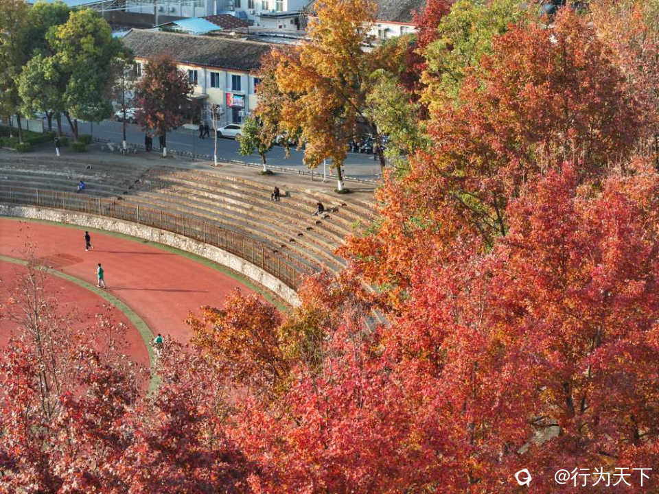 [秋天该有的样子] 刷爆桂林朋友圈,师大育才校区田径场的红枫美到窒息!