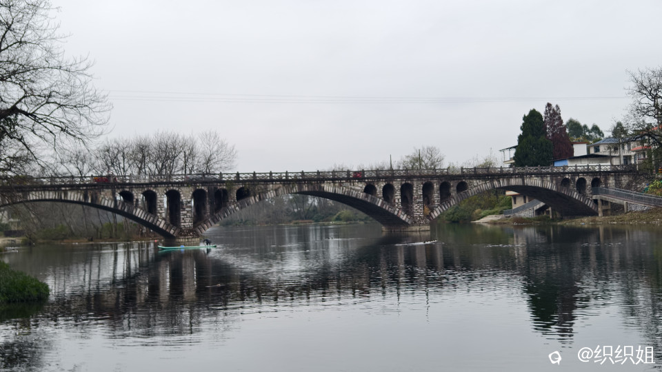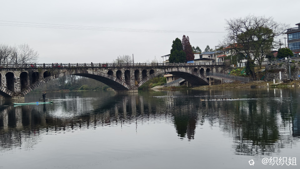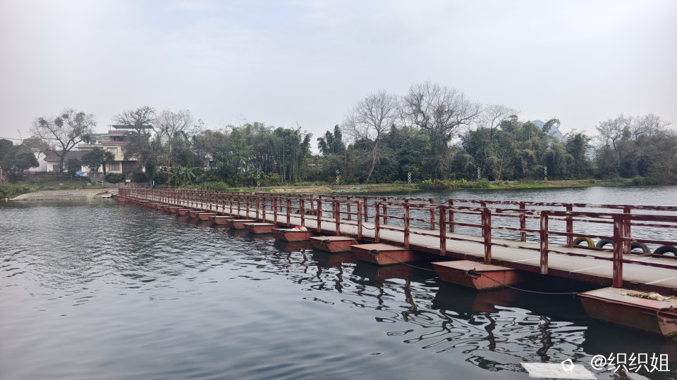 以前简易的浮桥变成实用、美丽、坚实的网红打卡桥
