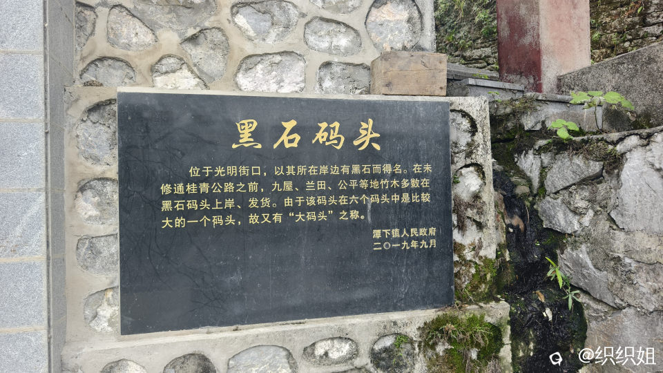 位于光明街口,以其所在岸边有黑石而得名。在未修通桂青公路之前,九屋、兰田、公平等地竹木多数在黑石码头上岸、发货。由于该码头在六个码头中是比较大的一个码头,故又有“大码头”之称。