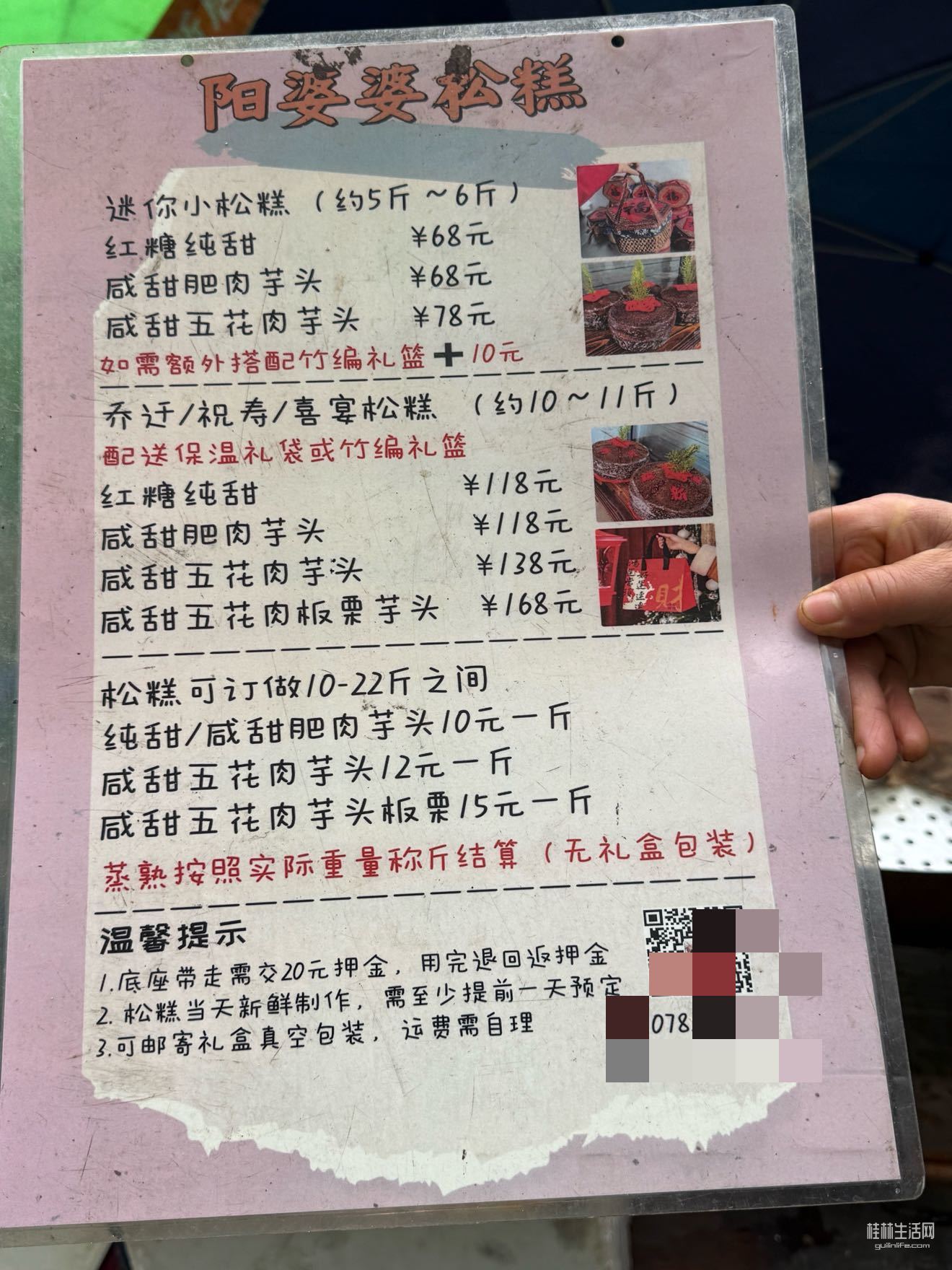 早上九点多路过松糕点,停车和老板娘打了个招呼!见松糕差不多卖完!这么贵的糕还是挺抢手!