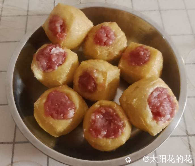 不吃葱花的小朋友,自己做点纯肉的豆腐酿给她吃……