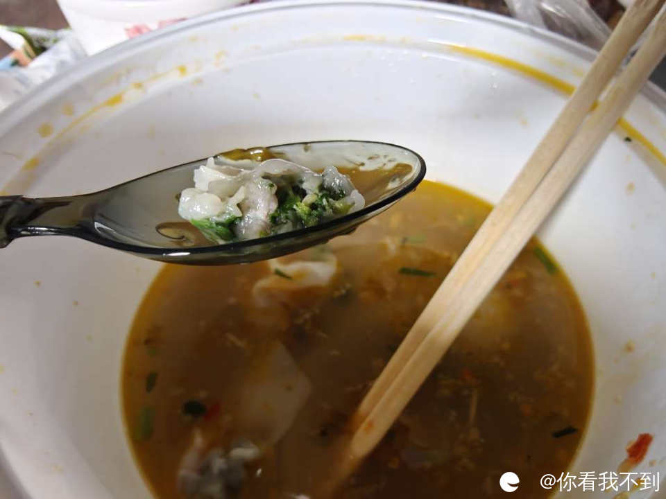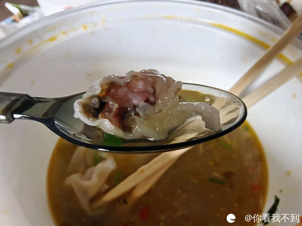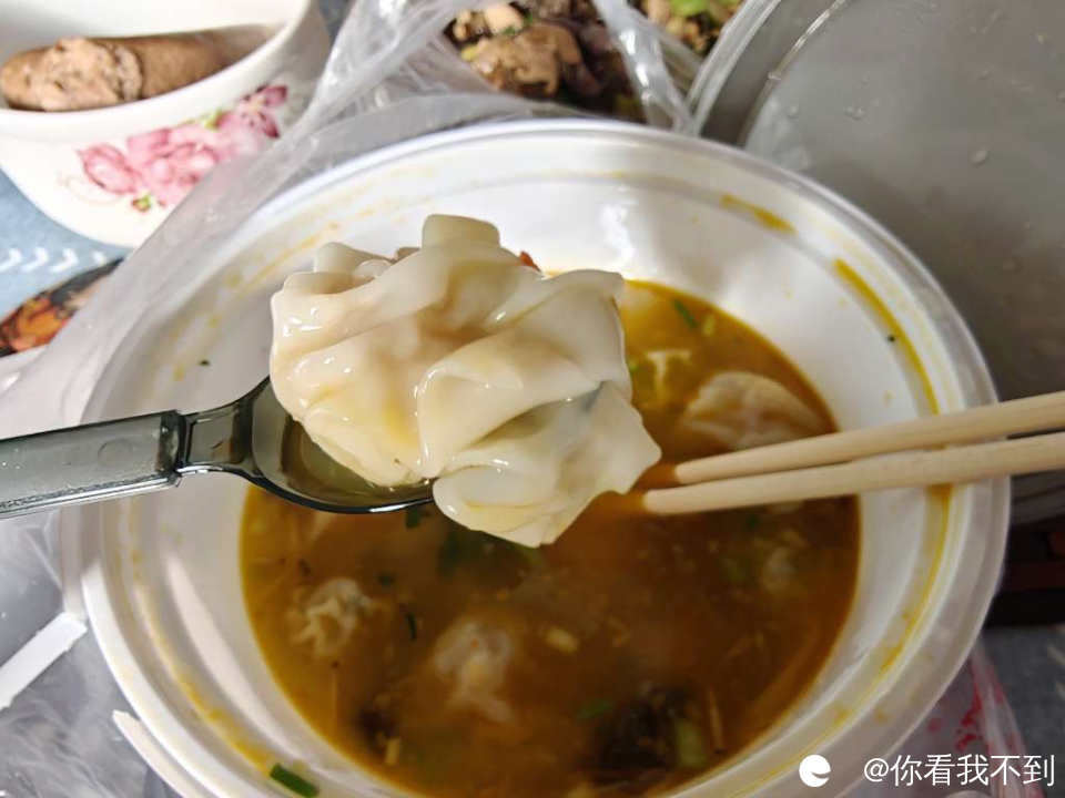 一碗馄饨里面配了两个鹌鹑蛋,馄饨的汤我点的是贵州金汤,酸辣的风味在冷天时候吃一碗非常暖身子,但辣味不呛人,比较适合不怎么能吃辣的我。