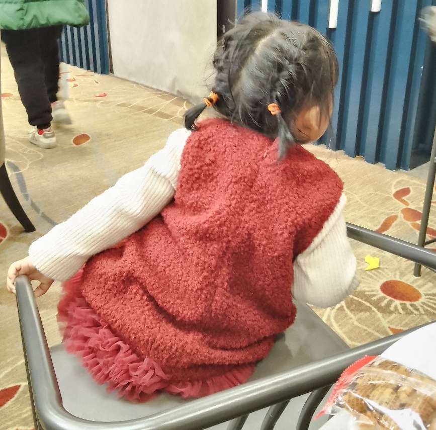 去年的这个时候还是短发,现在头发终于可以扎辫子了,小朋友的姨妈给她扎的辫子,小朋友好喜欢……