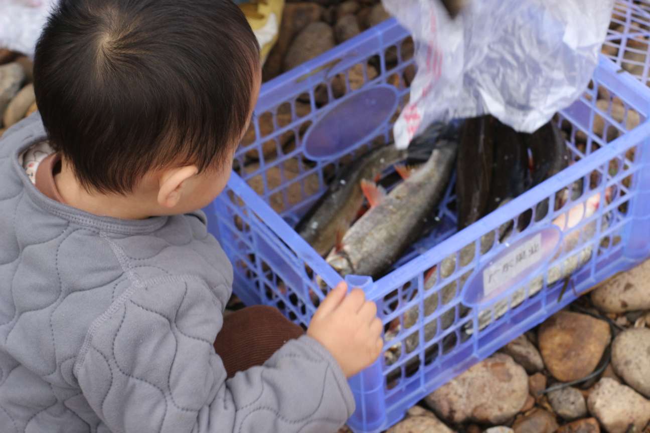 周日带安达小盆友去郊区野炊,买了点刚钓上来的鱼。