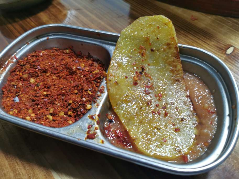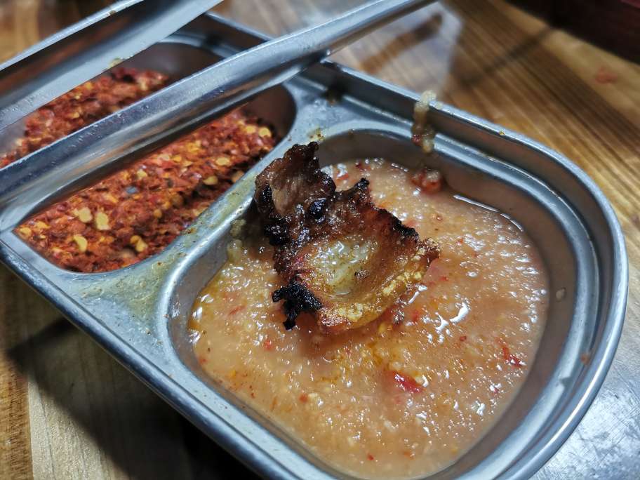小伙伴介绍说,她来了好几次,觉得这家的秘制蘸料特别好吃,所以就带我来了。