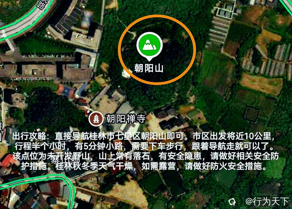 该点位为未开发野山,山上常有落石,有安全隐患,请做好相关安全防护措施。桂林秋冬季天气干燥,如需露营,请做好防火安全措施。