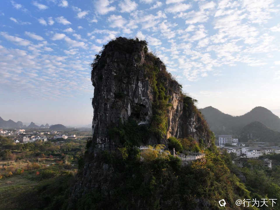 在桂林七星区信息产业园附近,有一座藏于市井的奇山——朝阳山。这座海拔不足300米的喀斯特孤峰,宛如一位隐逸的智者,静立在寨山脚村旁,等待有缘人探访。