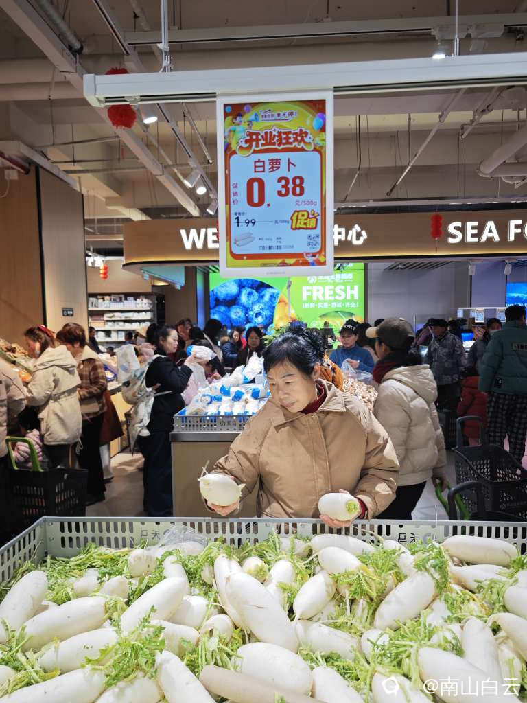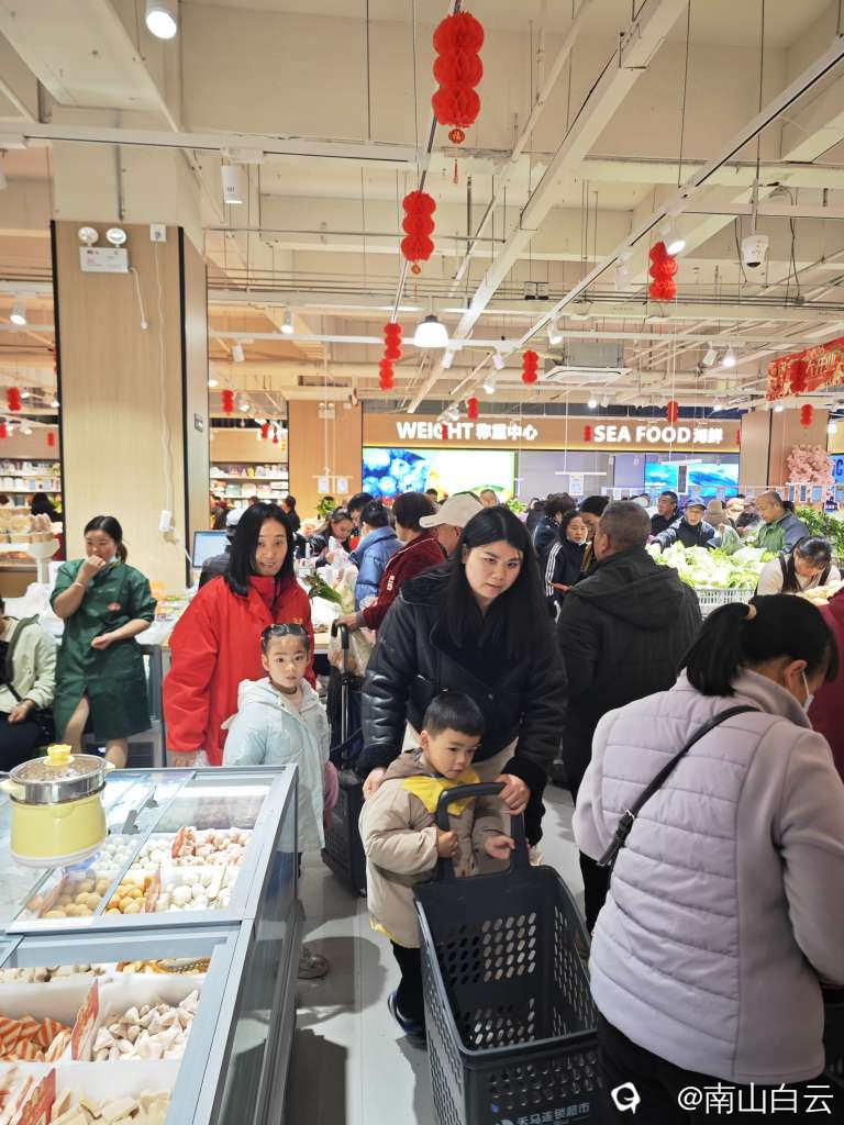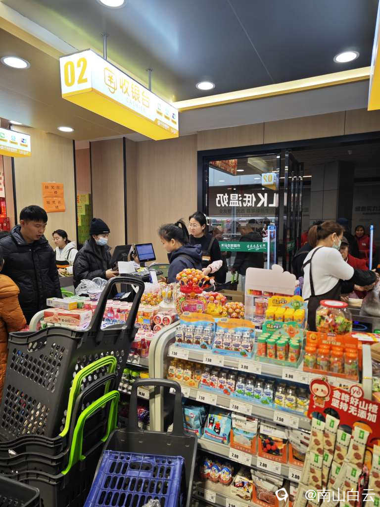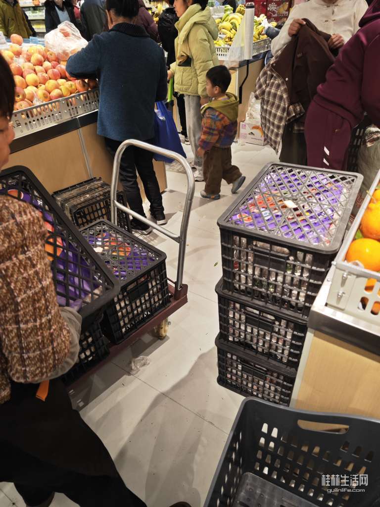 买单结账的更是堵车严重,有些怀疑人生。想想也没什么,上次某辉重新开业,里面连堵几天。呵呵,人都是这样,喜欢热闹。不过“国家级”的某辉有很多自助付款机,这家可没有。硬件不行,收银员可忙活了,但顾客还是有赖心。在桂林,近几年开业了很多大型生鲜超市。记得上世纪九十年代,微笑堂的生鲜超市开业,那是多么壮观,柜台都挤坏。后来0几年的南城百货和联达的人人乐都是这座城市的购物中心。当然有的却黯然消失,成了历史的记忆。在互联网飞速发展的今天,人们更乐意网上买买买。