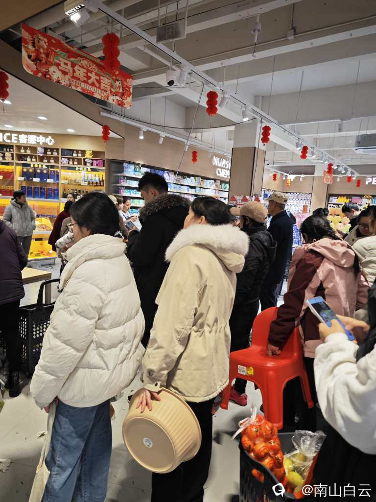 超市门口很多人排队抽奖,应该是刚刚在里面买了东西,出来试试运气,有的手气不错,大家都很兴奋。