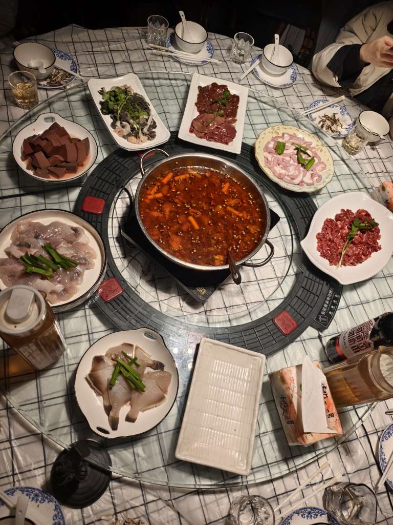 肥肠鱼、大虾、腊味锅、蚂拐、羊肉、牛百叶…肥肠鱼居然搭载的还是鲈鱼,猪肝粉肠牛肉猪腰也是买得超好,特别新鲜。炒菜也是非常拿得出手,腊味还是石头私厨出品,非常优秀,活生生把我512的胃撑成了一个T