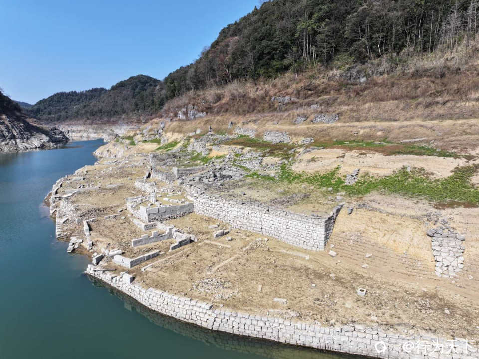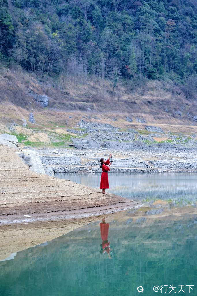 当晨雾漫过水面,远山如黛,湖水似镜,残垣隐在雾中,像一幅写意的水墨丹青;当落日熔金,晚霞染红天际,岩壁与残垣被镀上一层暖黄,苍凉与壮美在此刻达到了极致。