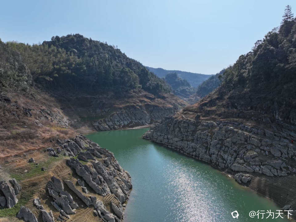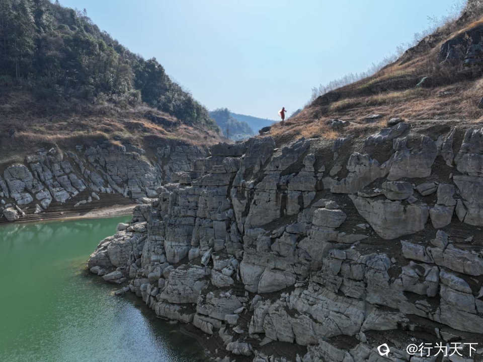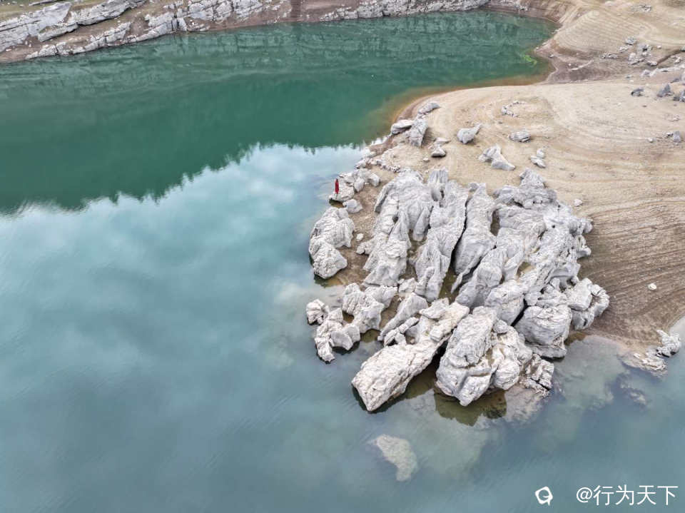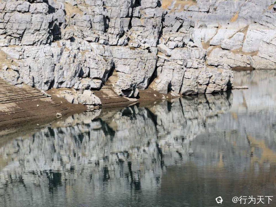 站在水库岸边极目远眺,澄澈的湖水如一块碧玉镶嵌在连绵群山之间,岸边裸露的岩壁被岁月雕琢出嶙峋的肌理,风蚀的痕迹里藏着不输雅丹地貌的粗犷。