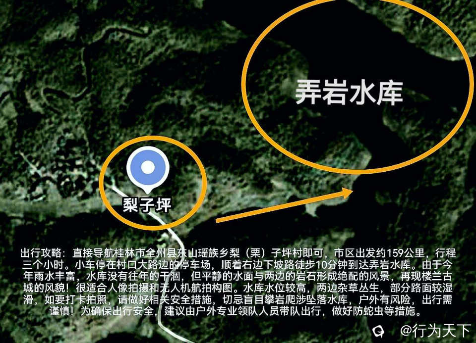 为确保出行安全,建议由户外专业领队人员带队出行,做好防蛇虫等措施。户外出行,注意行车安全,路边会车较难,规范停车。游览美景时,也请爱护环境,让心灵与山水同美。 #弄岩水库# #楼兰古城# #桂林户外徒步# #桂林小众景点# #全州东山# #桂林爬山# #桂林旅游#