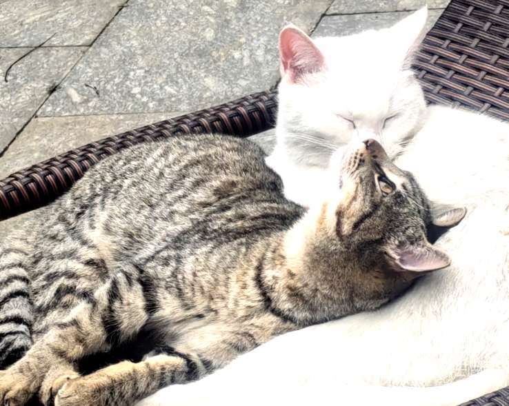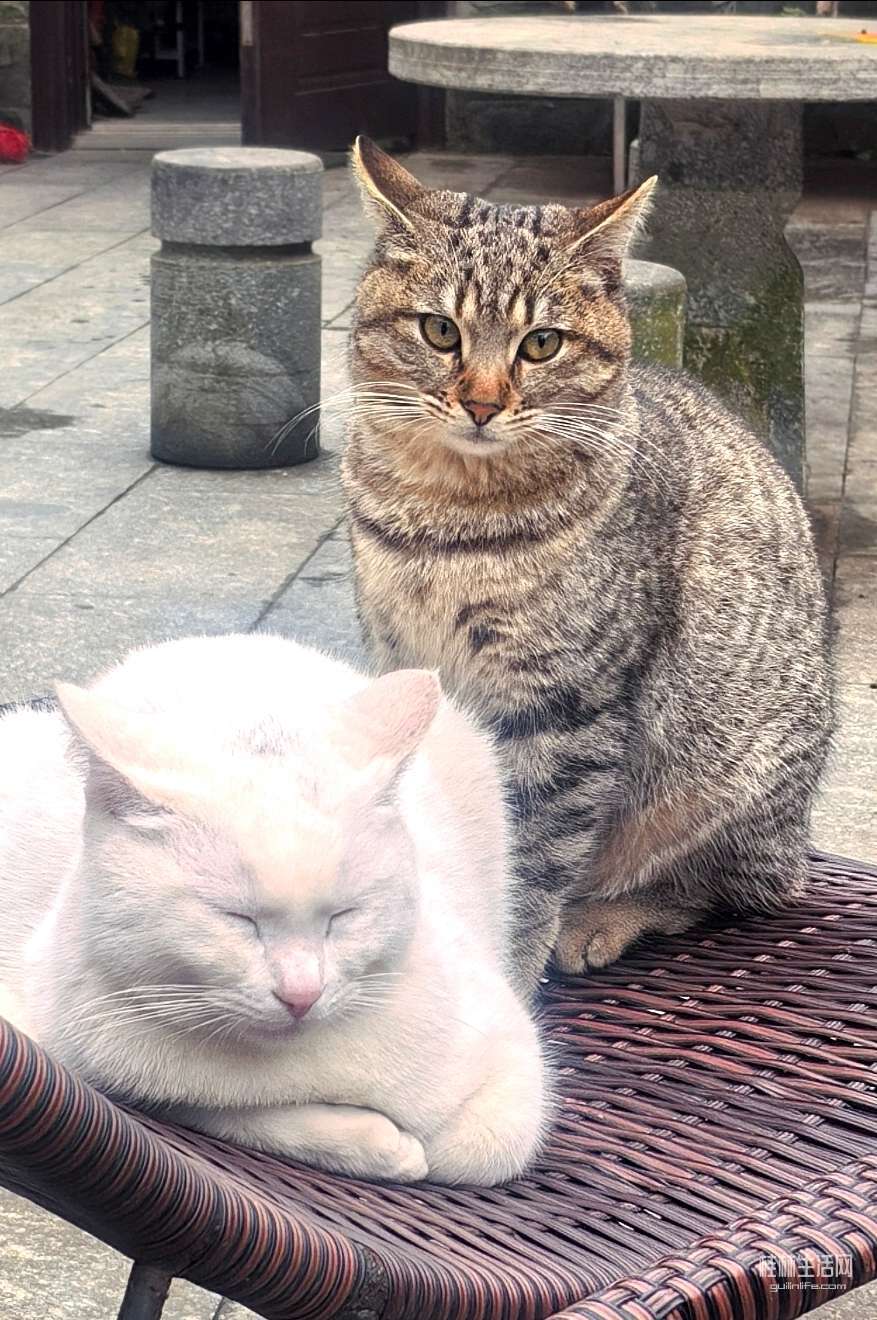 俺两孙宝抱养两只猫,是同窝兄弟,孙女给白猫取名小白,孙子给狸花猫取名狸狸,几个月了,这对猫兄猫弟天天腻在一起,抓过老鼠两三只,但吃鱼吃肉真是厉害!