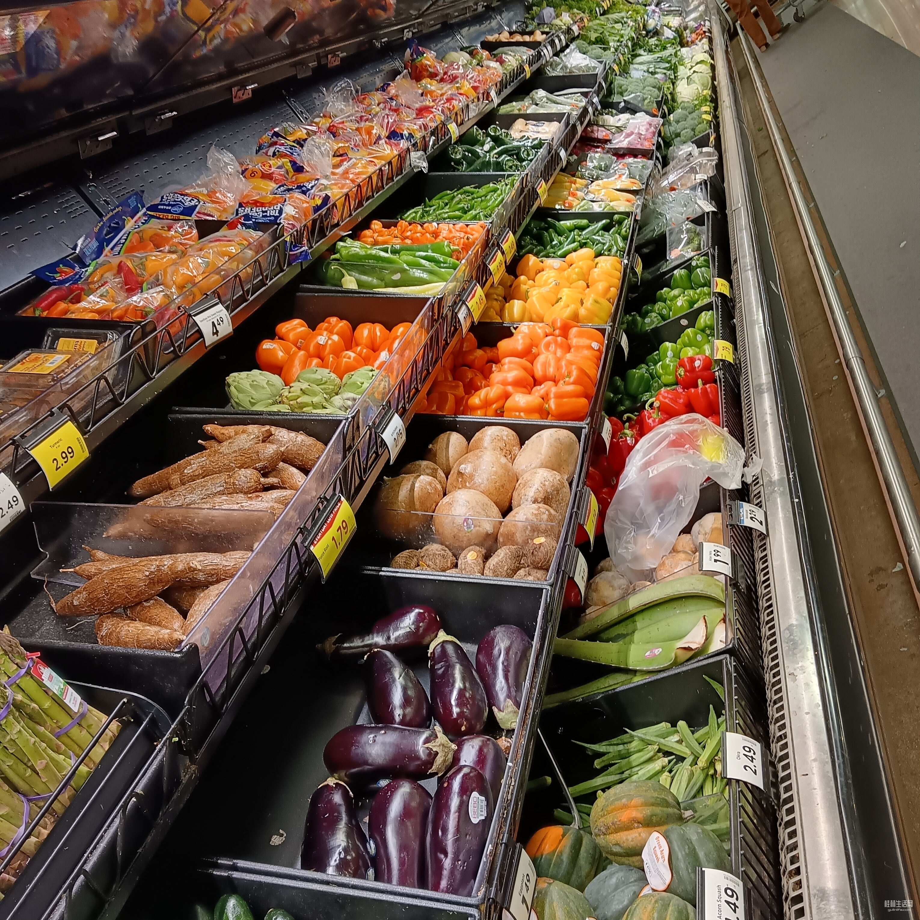 瞄一眼洋蔬菜。各种彩色圆椒,墨西哥辣椒,四季豆;红萝卜,茄子,西蓝花;芦笋等等。