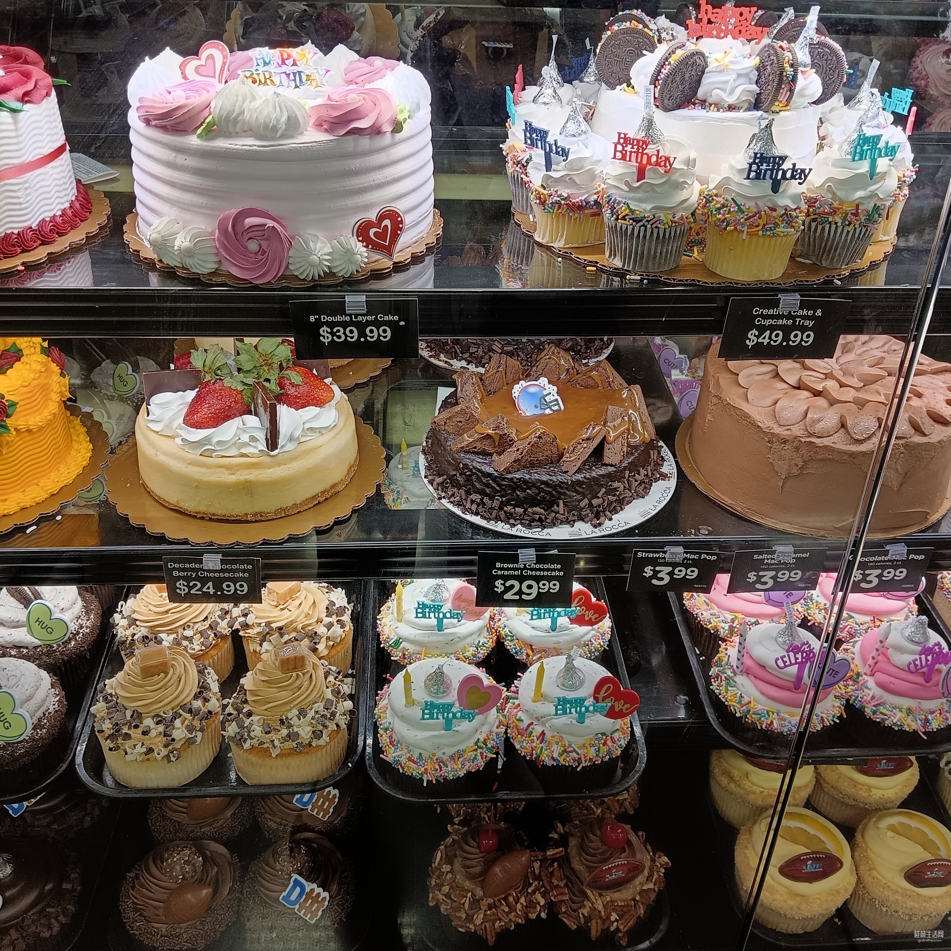 在烘焙蛋糕柜那选了几个甜圈和点心,顺手拍了一张洋蛋糕的照片,价格不便宜呢,咱孩子说,中国店卖的蛋糕更贵。因华人店做的蛋糕点心符合中国人的口味,没那么油腻那么甜。