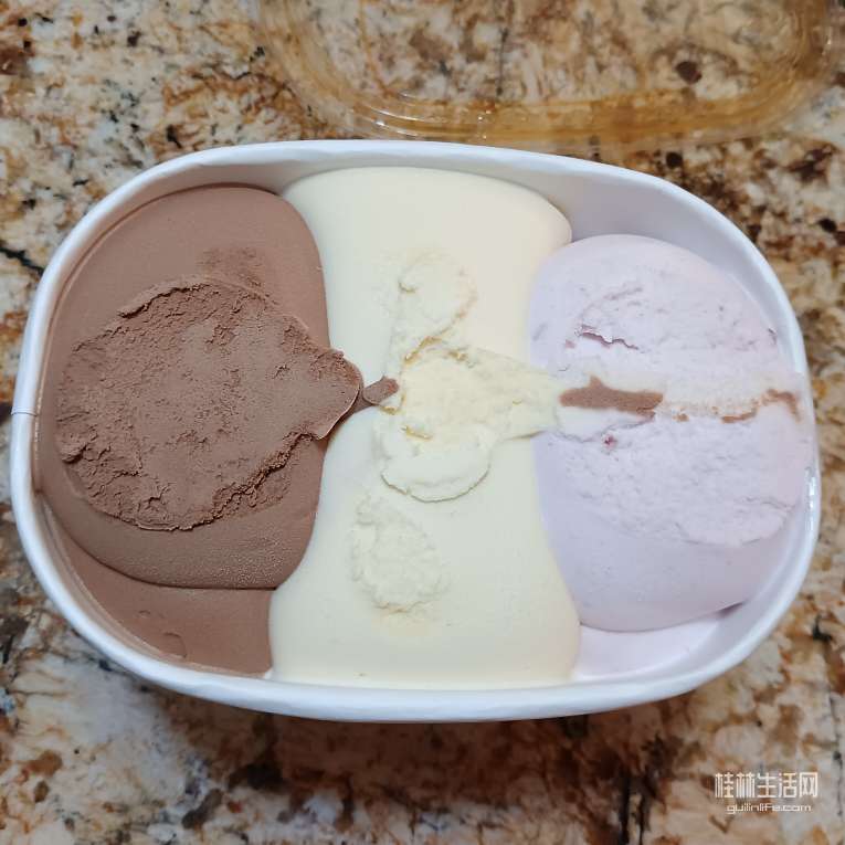 三色冰淇淋,巧克力,香草;草莓。
