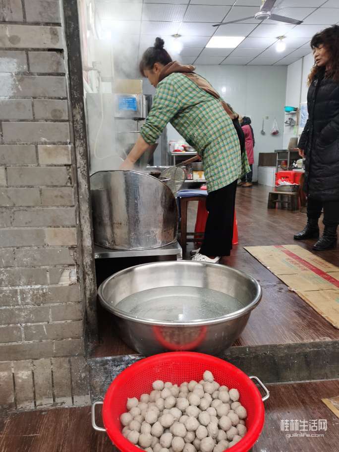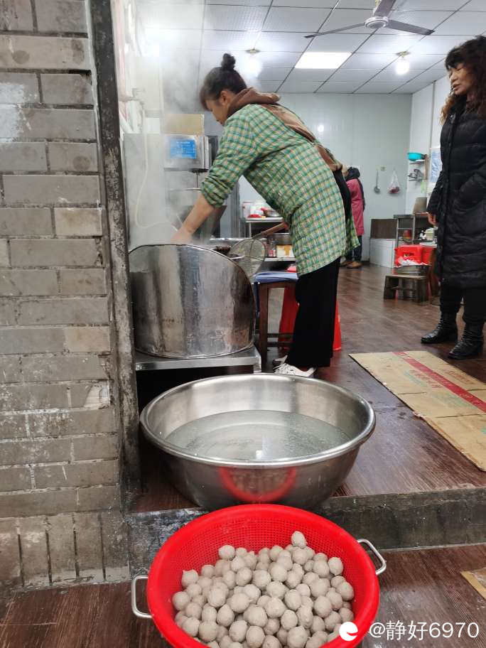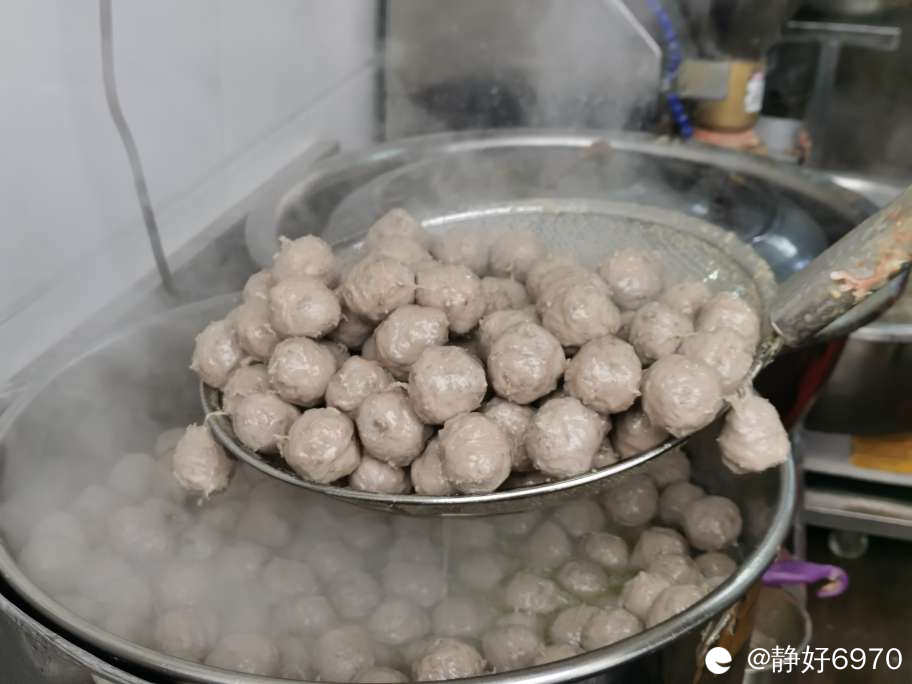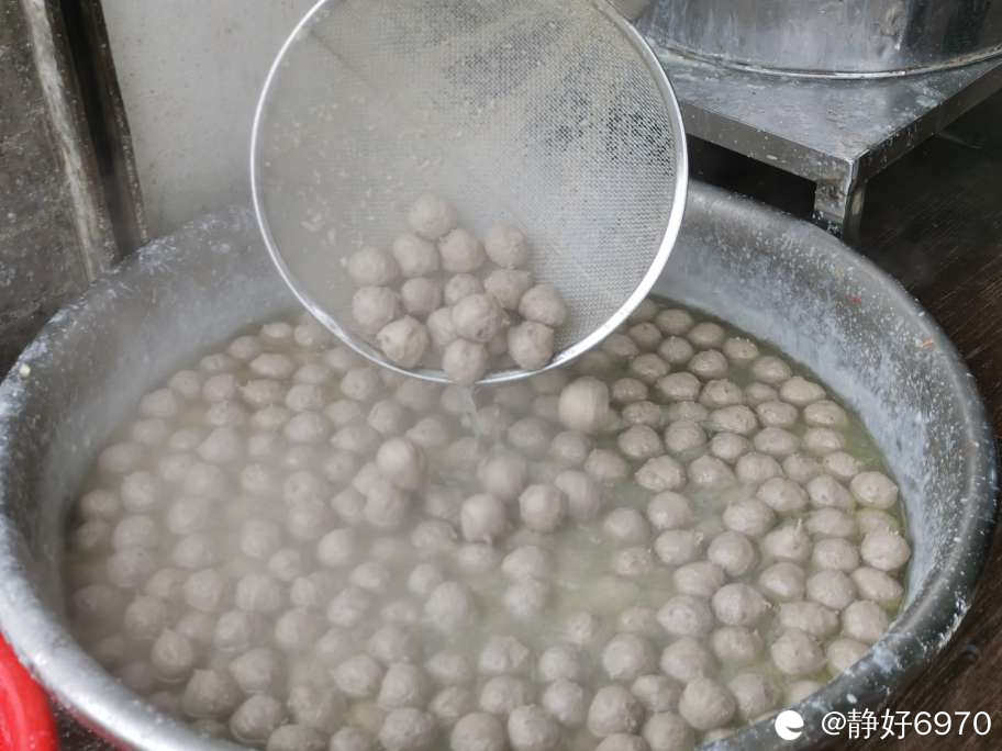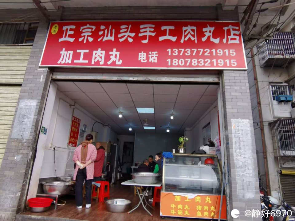 前期准备工作做好后就拿到黑山早市红绿灯对面的“正宗汕头手工丸子店”,现在是旺季,里面等了很多人,不敢拍别人,远远的拍了一张老板娘