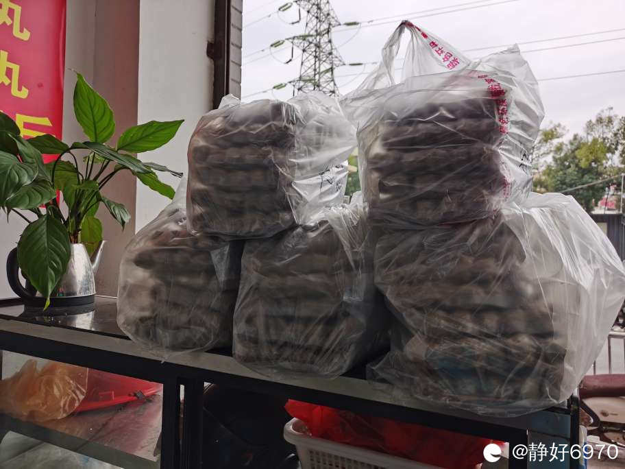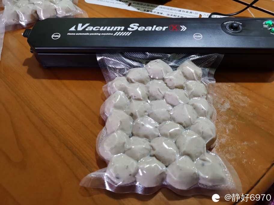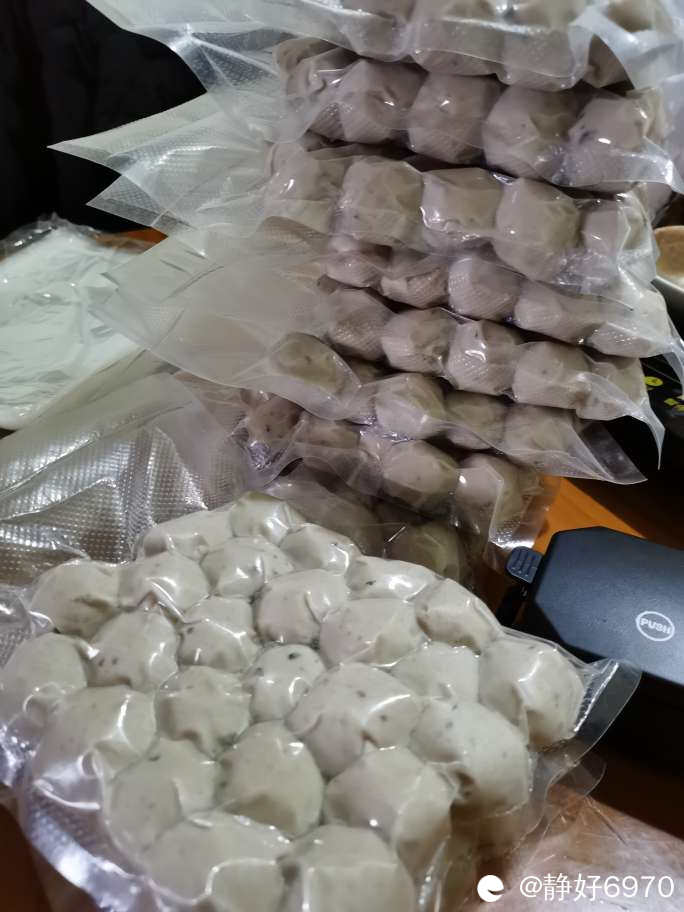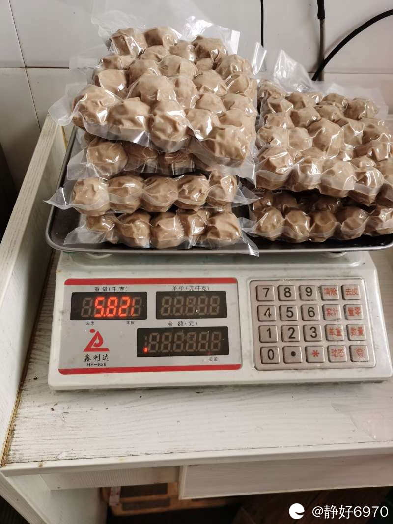 为了好保存,丸子店也可以帮抽真空,收一元一斤封装费。见老板太忙了,我自己家里有抽真空的机器,于是后续工作我自己完成。