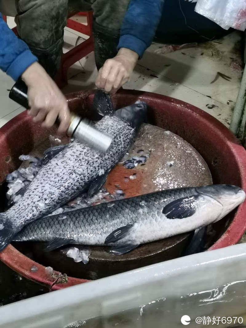 因为我比较喜欢吃鱼丸,感觉比较软,Q弹有嚼劲,口感好。于是早早地来到黑山早市买鱼,买了两条大的乌草鱼。14斤多的鱼,得鱼肉5.7斤,按丸子店老板说的,大致1斤鱼得3.5两的鱼肉,也就是说鱼越大,鱼肉越多。