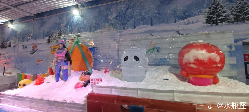 看完表演,娃想去旁边的冰雪大世界,这个4年前来的时候就存在了。门票40元,包括冰雪大世界和镜子迷宫。冰雪大世界里没多大,但是滑梯很好玩,娃都玩了十多回,还有造雪的雪。