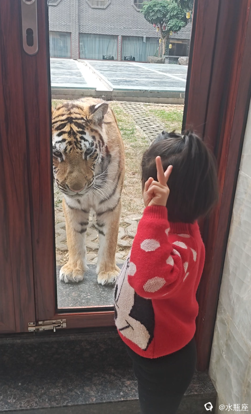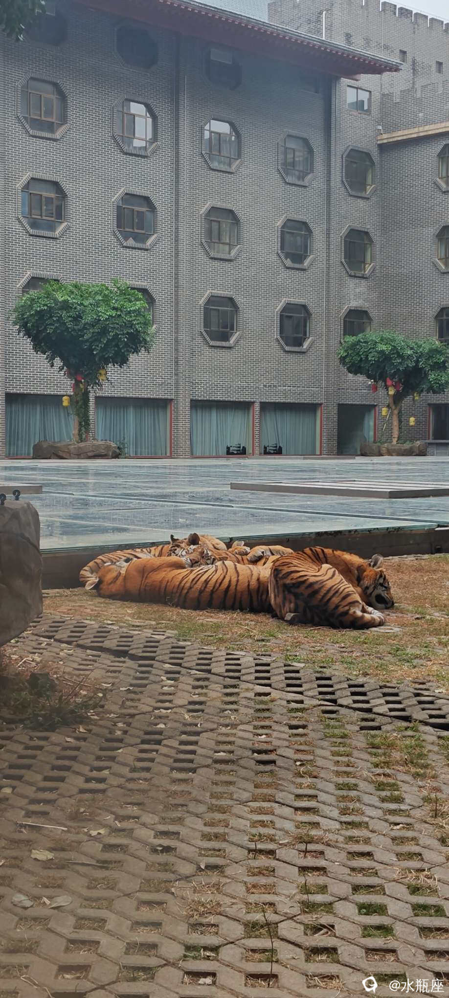 4年前来的时候,女儿连这块隔着老虎的玻璃都不敢靠近。。。现在是看老虎看不够。