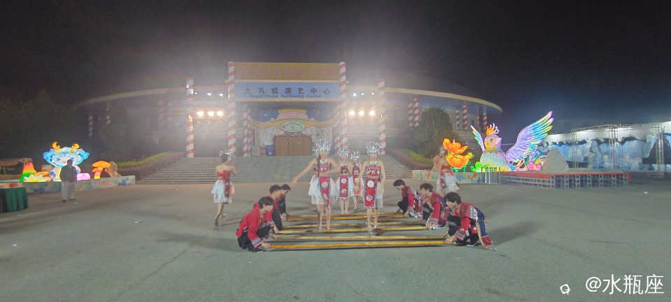 晚上7点以后还可以入园看花灯,虽然灯不是很多,但是广场上十多分钟就有一场演出,很热闹。