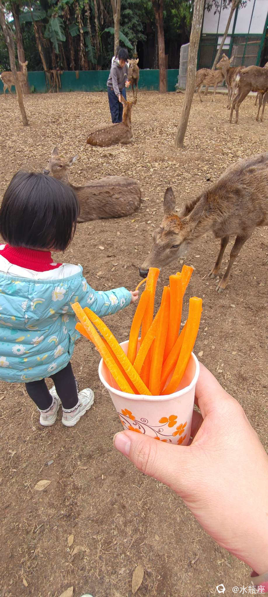 十元一份的胡萝卜喂梅花鹿,娃喂了3份还不过瘾