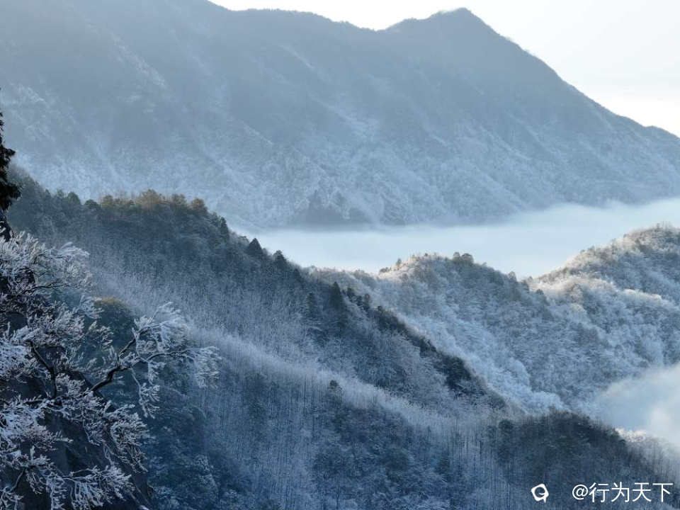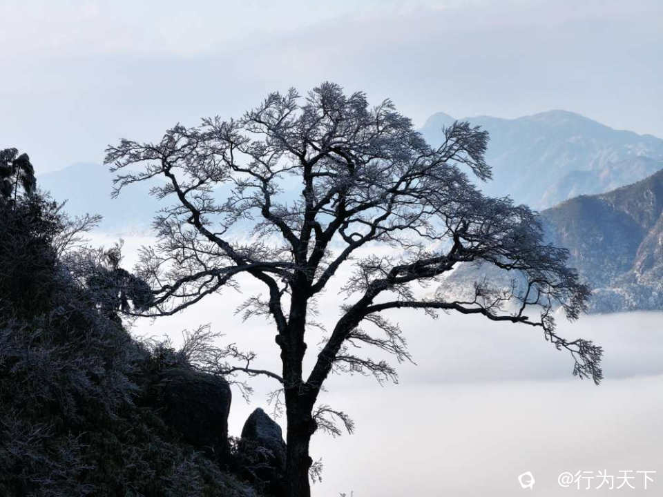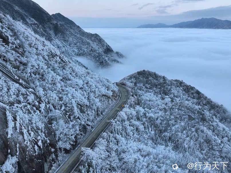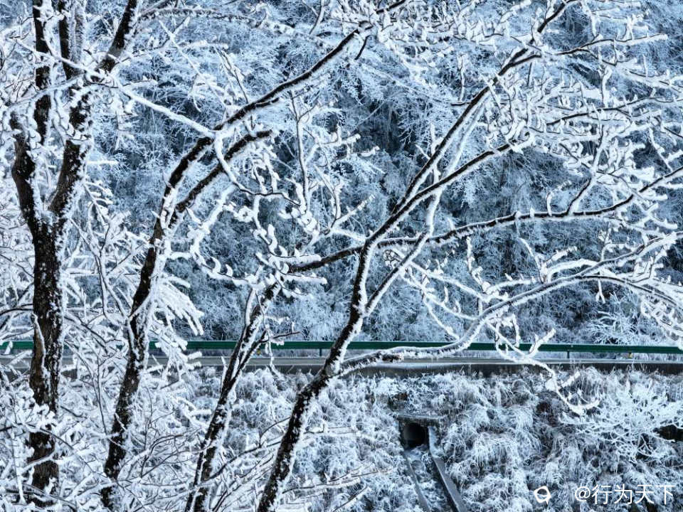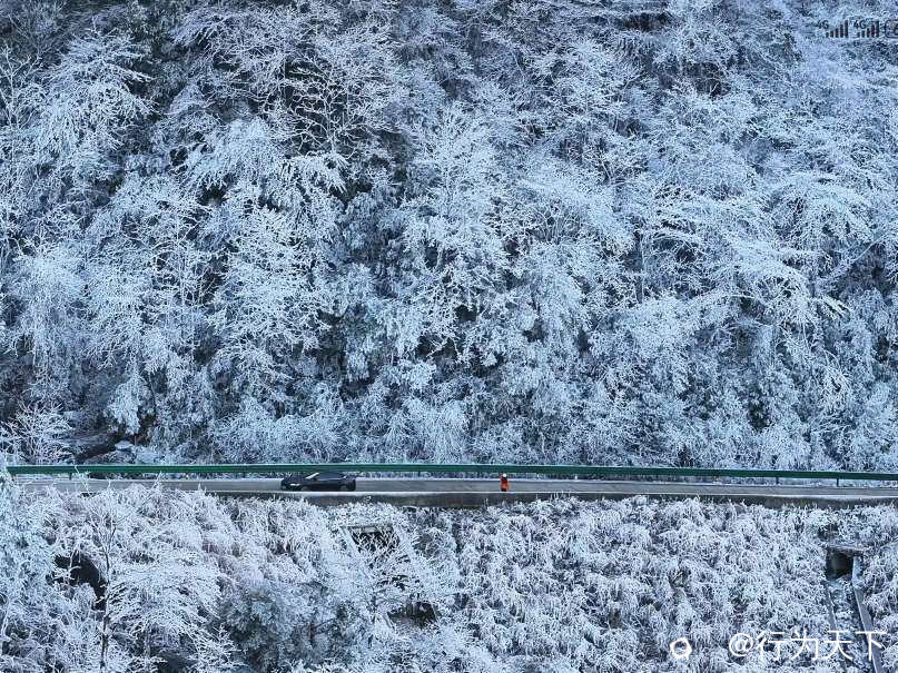 这是南国难得一见的冰雪奇观,是低温与高湿的天作之合,是自然馈赠的限定盛宴。没有喧嚣的人潮,只有冰晶与风声共鸣,只有银白与天光交融,每一处景观都透着不加修饰的壮阔。
