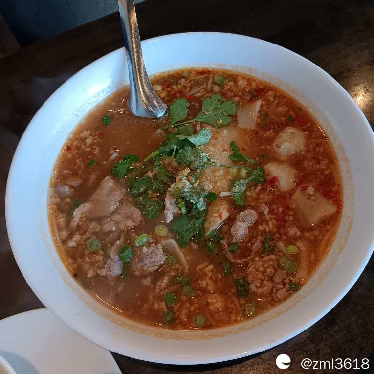 冬阴功汤粉,咱来抄个作业:百度如此说:冬阴指酸辣,功意为虾,合称酸辣虾汤,是传统的酸辣汤品。以香茅,柠檬叶,虾,等为核心的食材,是泰国菜的代表作。