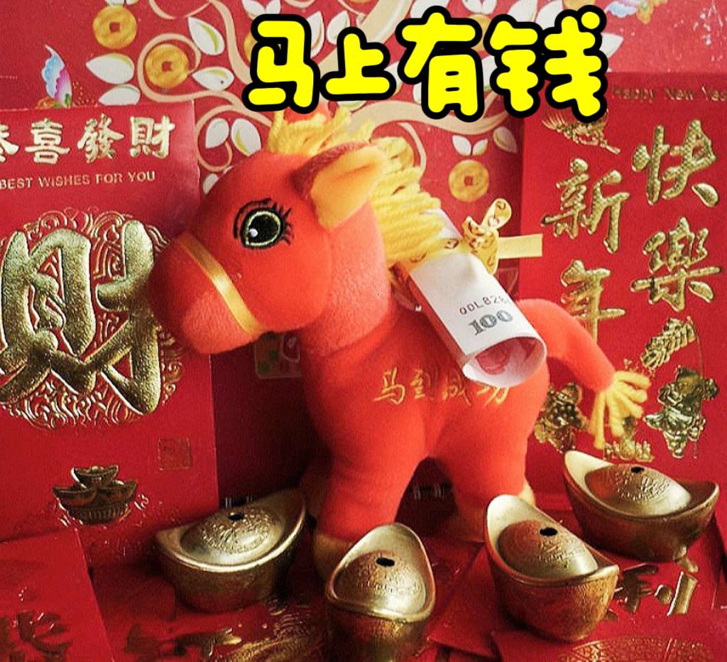 先在小马背上塞张百元钞,配着金元宝摆好,寓意“马上有钱”;再找个模型小房子搁它背上,秒变“马上有房”;抓辆玩具小汽车放上去,又成了“马上有车”;让猴子摆件蹲在马背上,安排“马上封侯”讨个好彩头!