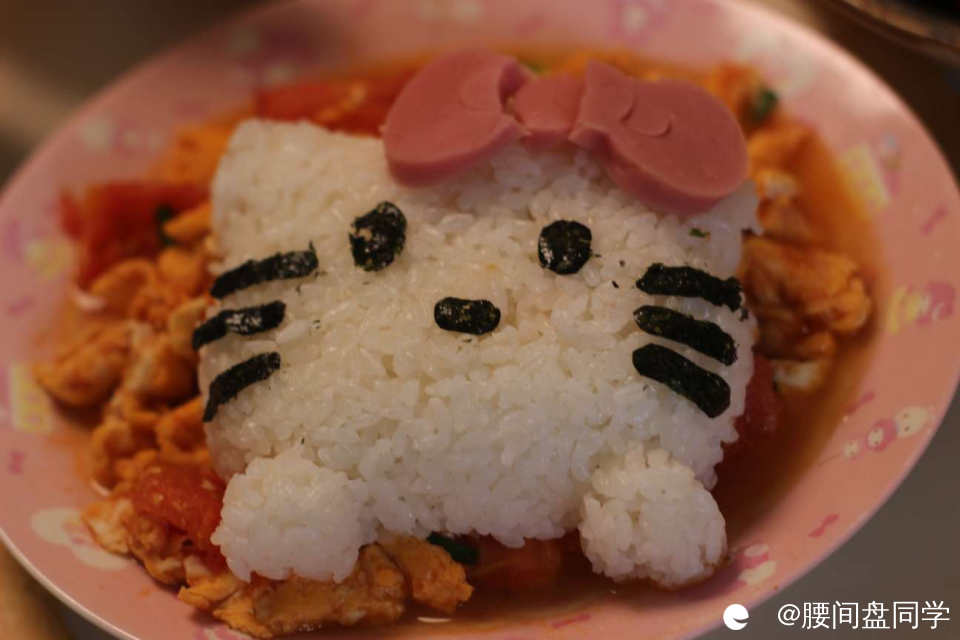 特意为儿子做的嗨喽Kitty饭团,一点点拼凑出爱你的样纸,妈妈咪呀,爱你哦~