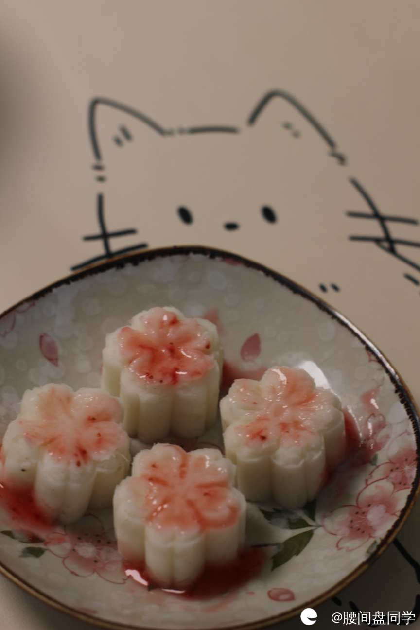 淮山小甜点,原汁原味的淮山直接压膜,撒了点草莓酱,不仅健康而且营养哦~