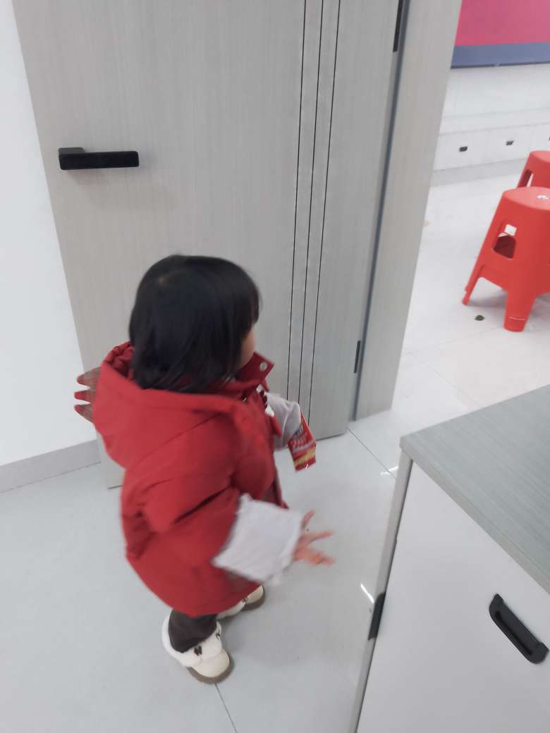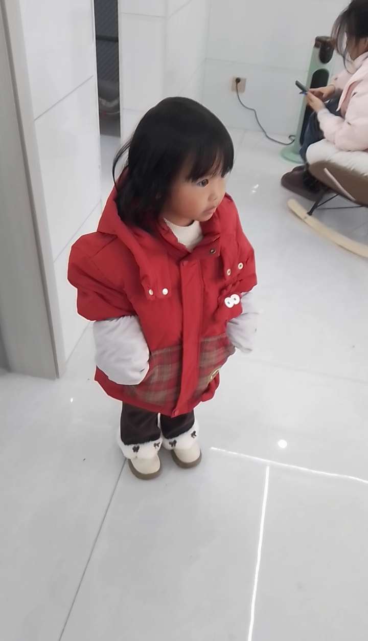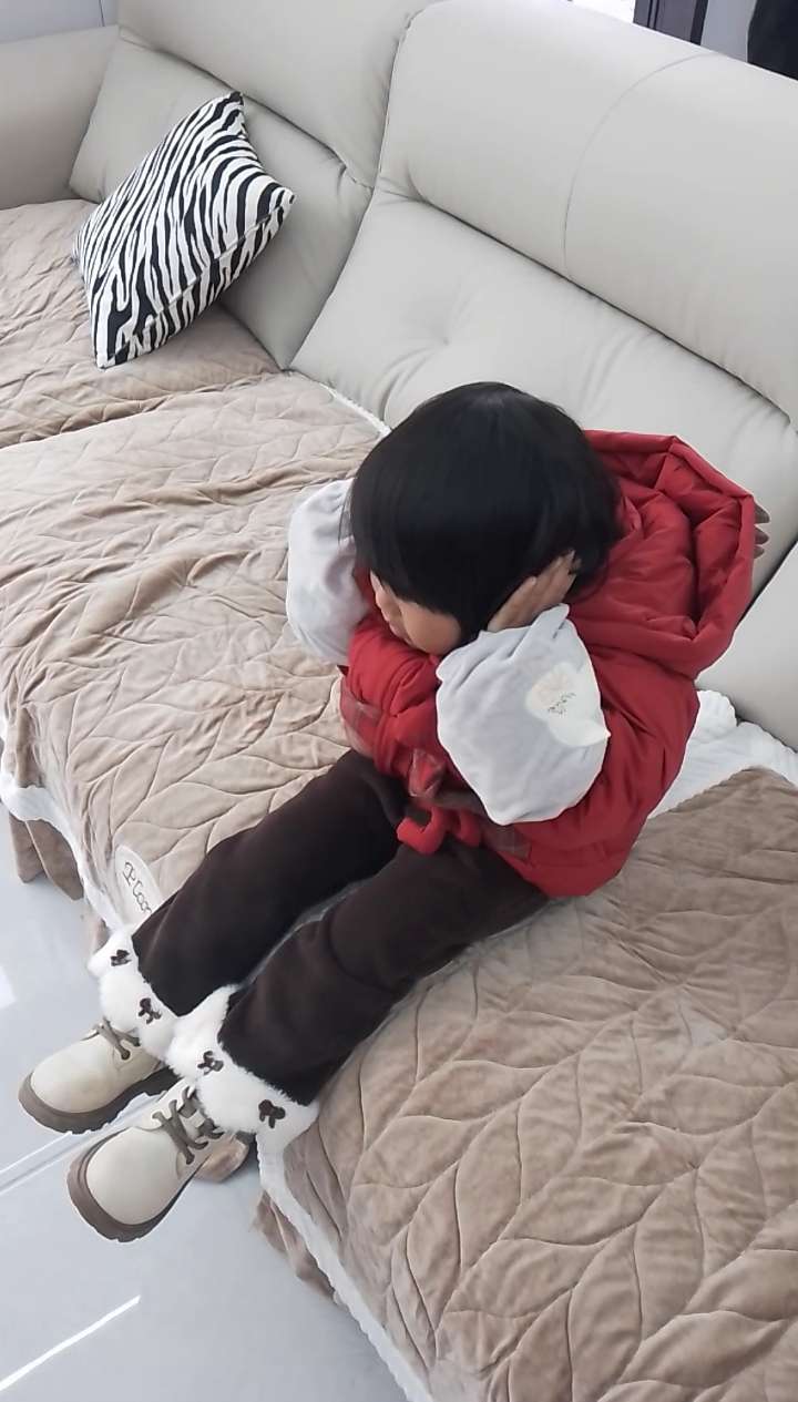 外面在放烟花,小朋友吓的把耳朵捂起来了……