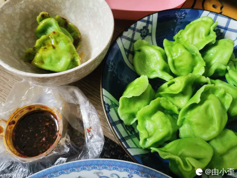 煮熟后沾着酱料,蔬菜肉馅的口味清爽可口,很有风味。