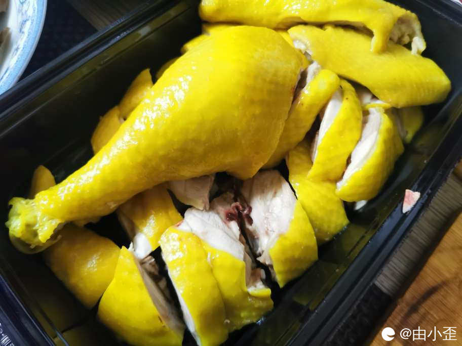 白斩鸡有点脆,除了家人做的,这家的也很干净,需佐以沙姜酱汁为佳。