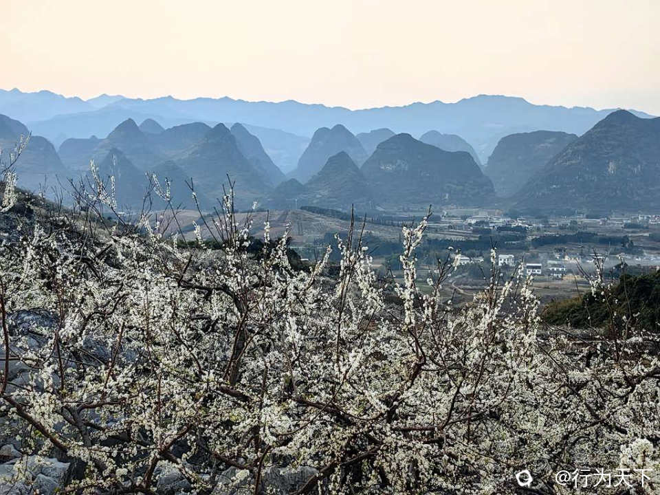 上千余亩李花挣脱冬寒,以铺天盖地之势席卷群山,将喀斯特地貌的嶙峋石峰晕染成一片无垠雪海,成就了华南地区最具冲击力的春日盛景。