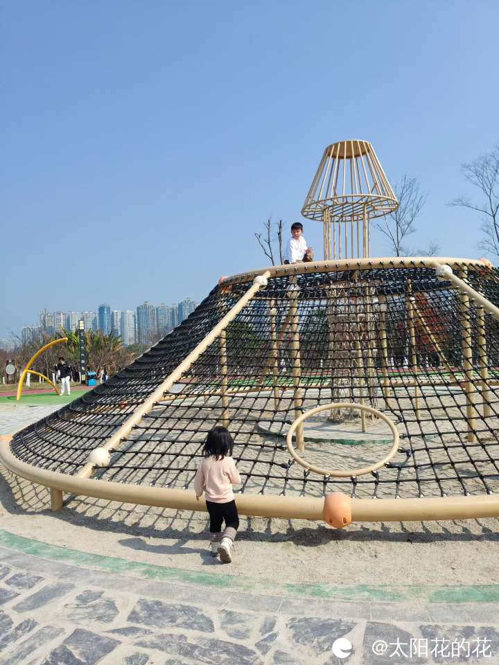 逛了一下雾散了,今天的太阳好大,小朋友来游乐场玩后面都只穿一件衣服了……