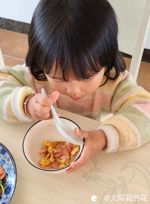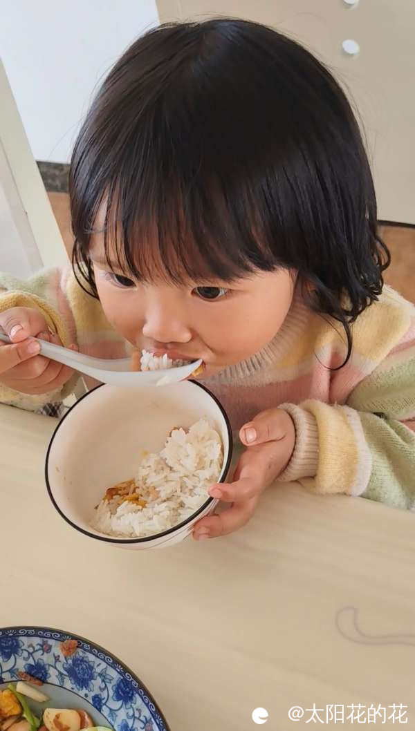 今天出去走了好多路,小朋友回家吃饭好能干……