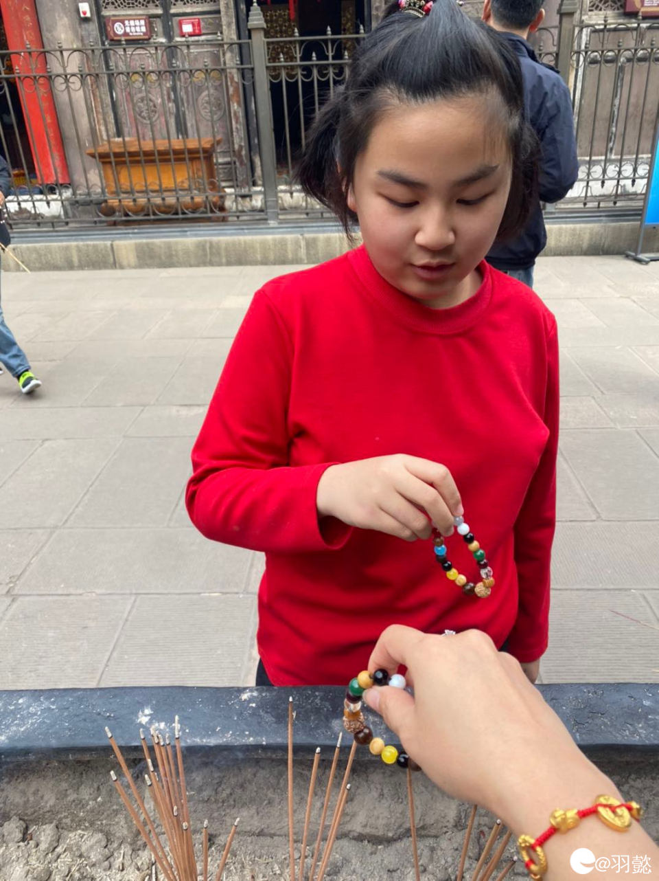 娃拿着手串开光