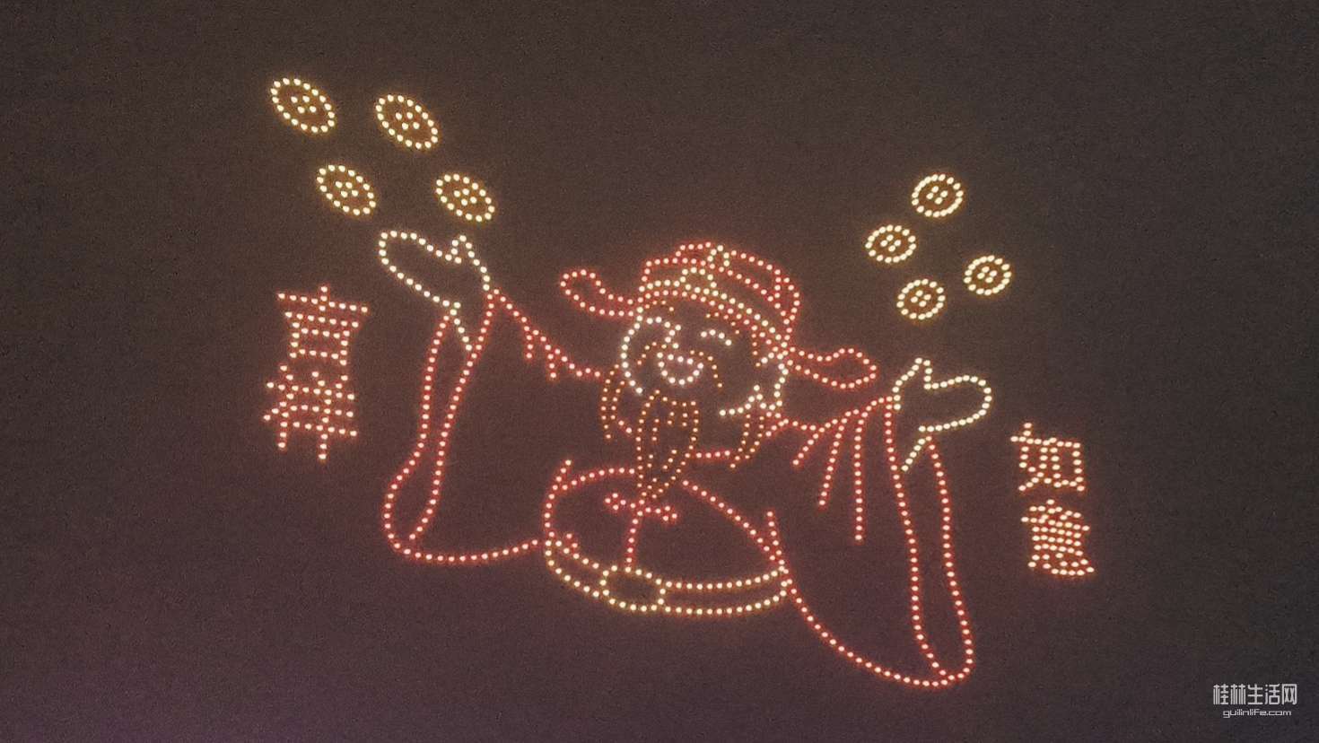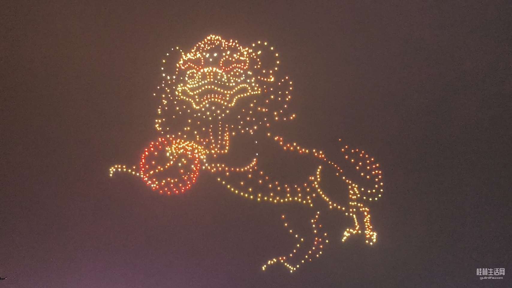 #无人机灯光秀 #打铁花,大年初一晚上这波操作无人机太秀了!用灯光拼出桂林祝福~迎新春打铁花年味浓浓!共赴这场光影盛宴!