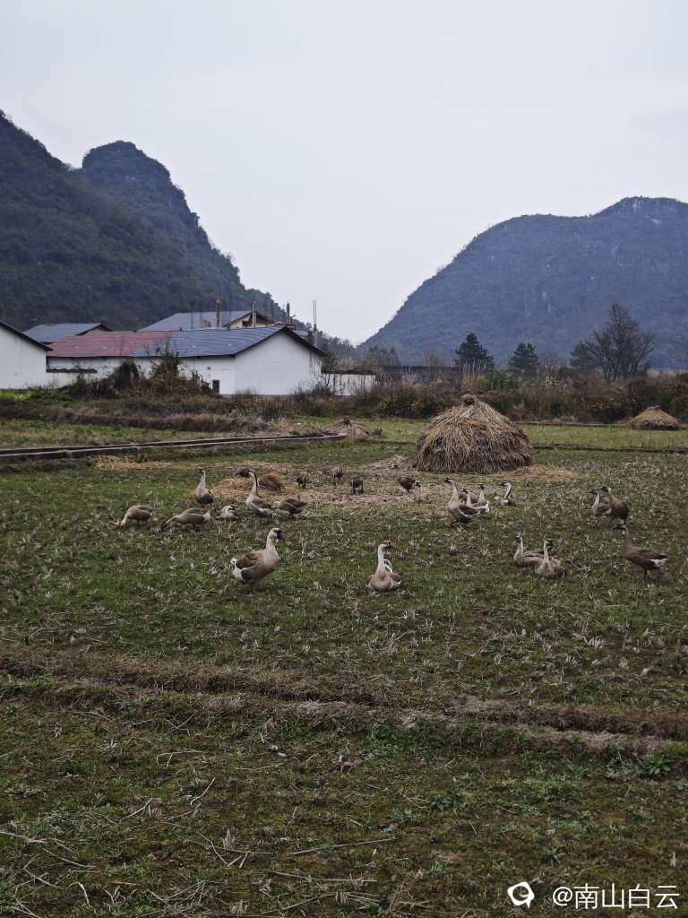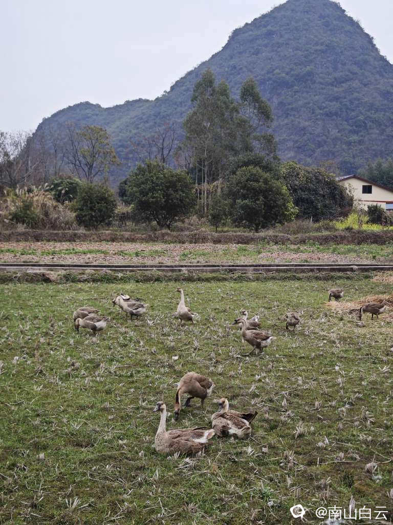 山水画的意境,田园的牛群和大鹅,写满了春天的画卷,风景迷人,世外桃源,令人心旷神怡。