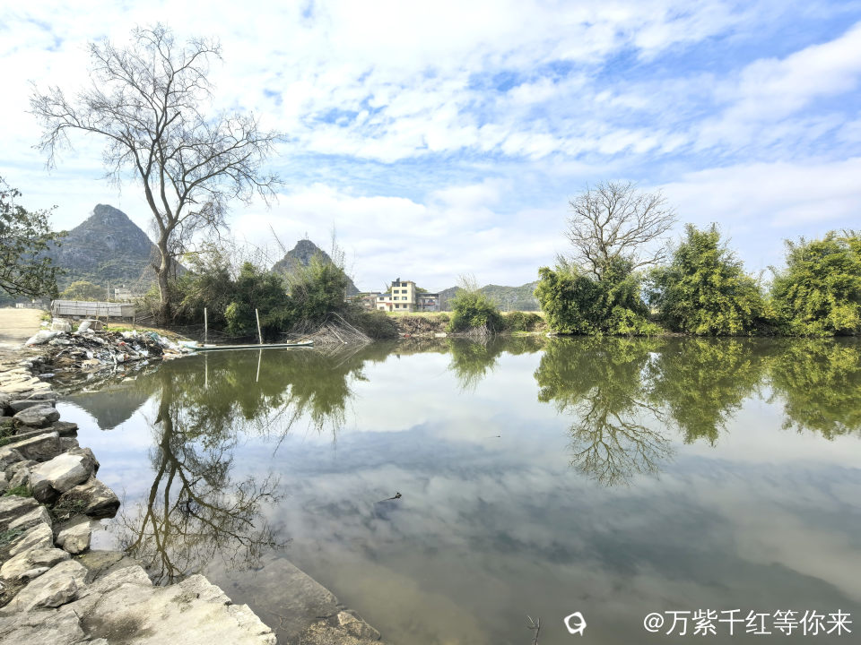 今天大年初四的下午,难得的好天气;心里想着梅花、樱花都开了,那梨花也开了吗?我不由自主的想到了聚田村河边的梨花树,赶紧去看看吧!