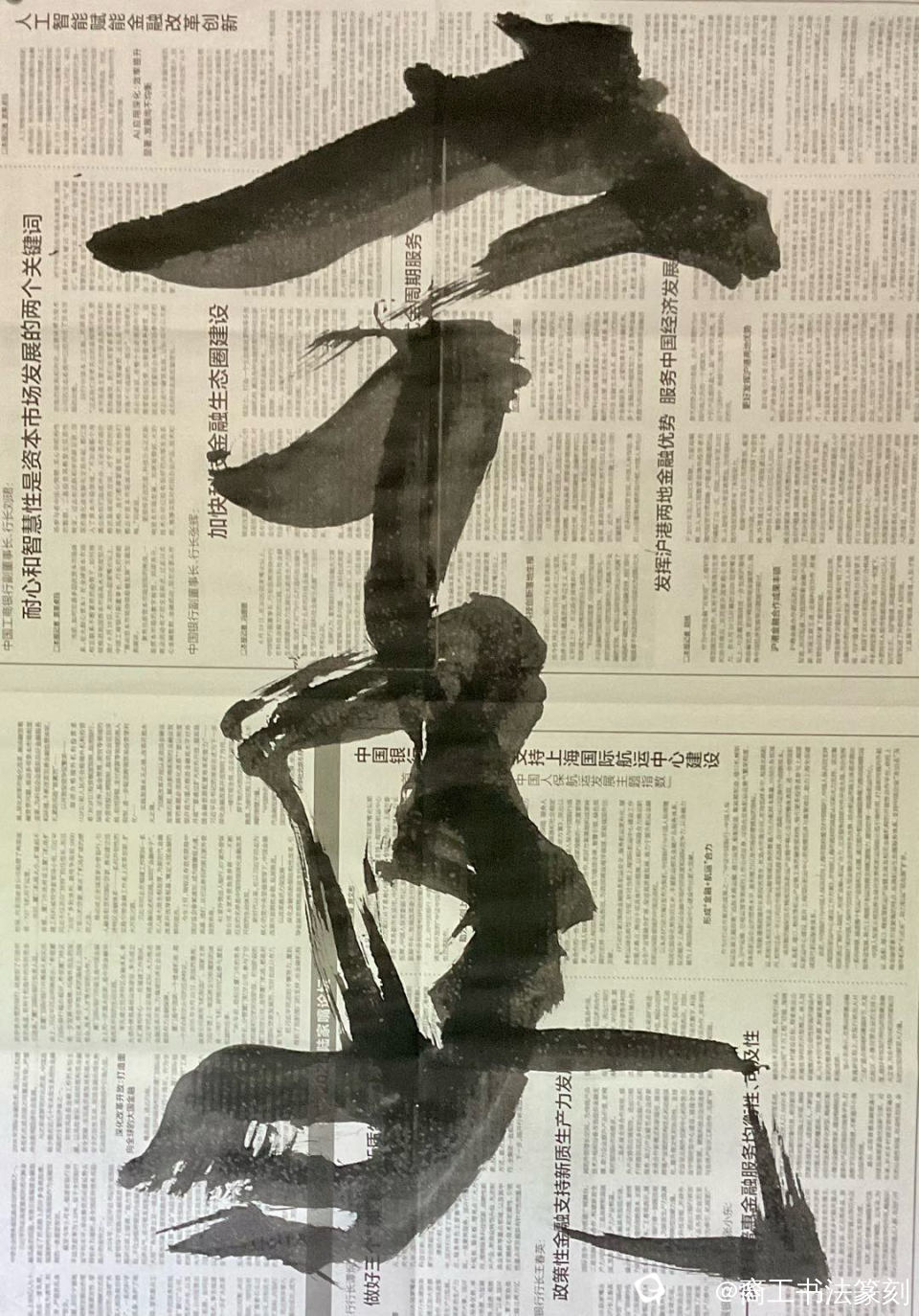 摸清了各种纸质的习性。宣纸太贵,吸水性强,墨晕染快,走样,失去我预定的效果。常年用生宣,熟宣,我手头没有。唯一大把成堆的是旧报纸,划拉习惯了,不值钱随心所欲地划,心理没有负担。没有印过报纸的新闻纸,也还赶不上报纸那么容易出效果。是油墨的作用,不懂。