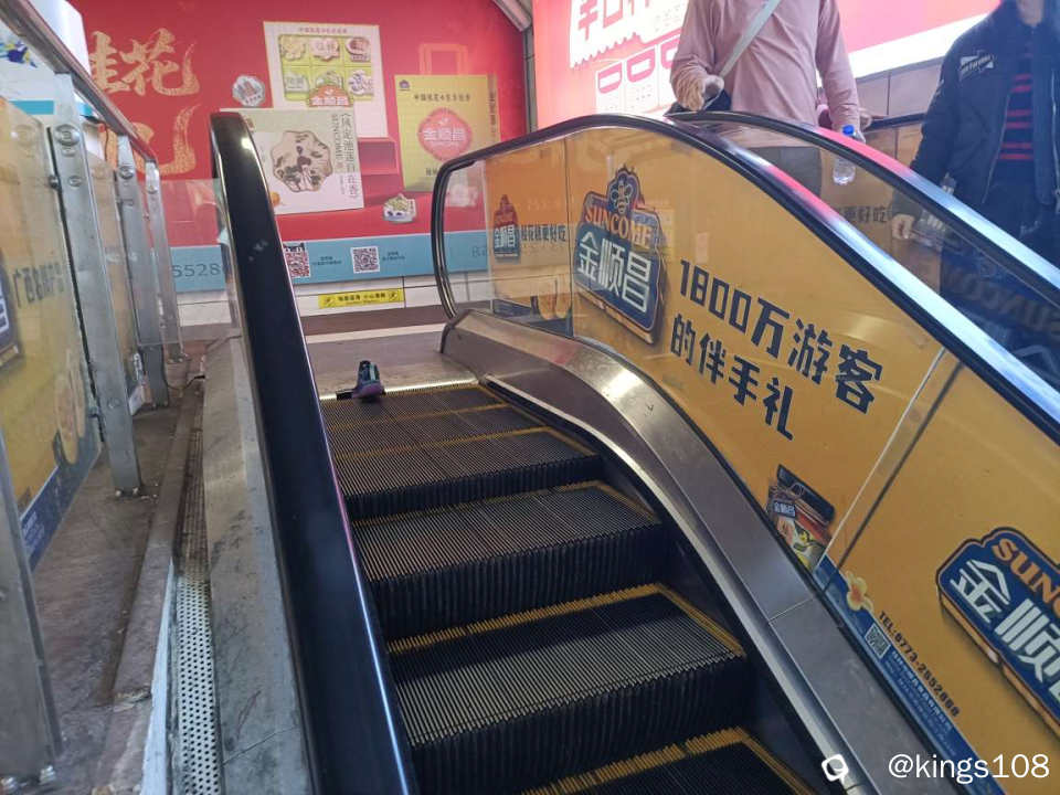 时,在正阳路口扶手电梯,小孩的鞋卡进电梯,造成电梯一声响然后停住,工作人员查看后,说是要请电梯公司来处理。