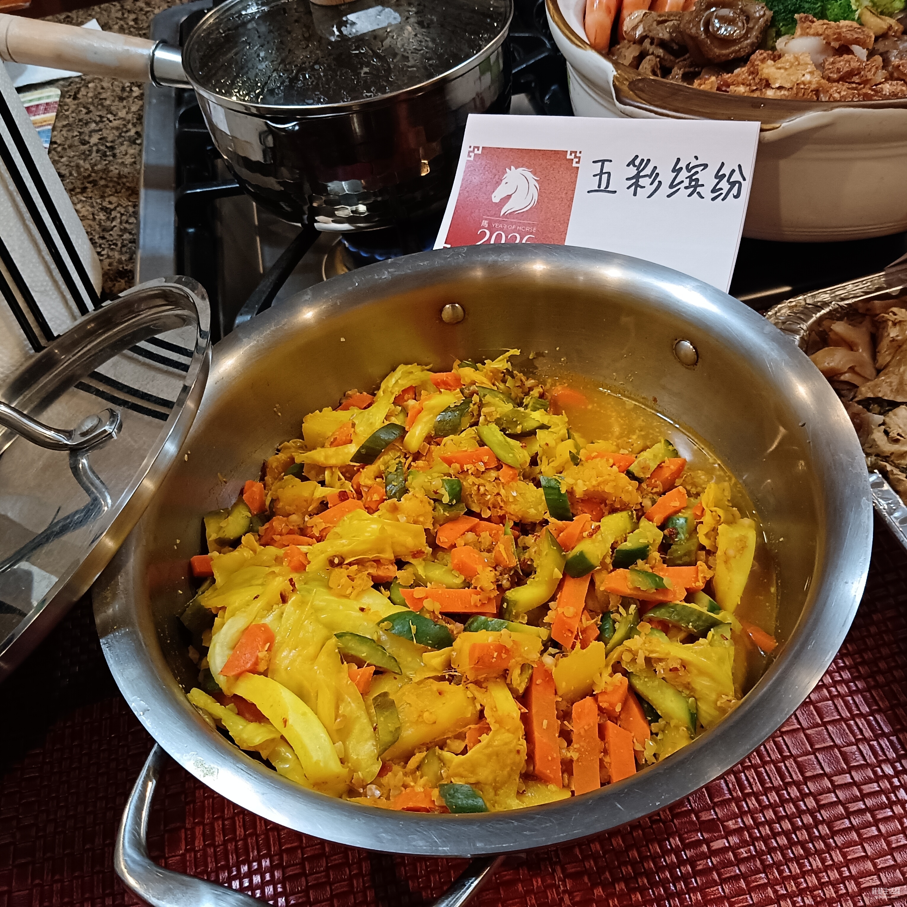 马来西亚传统过年大菜,捞鱼生。万马奔腾,七彩捞生!生(即升)一个造型栩栩如生的马,配上各种彩色蔬菜,腐竹脆皮,鲜三汶鱼,风味独特,寓意深远!