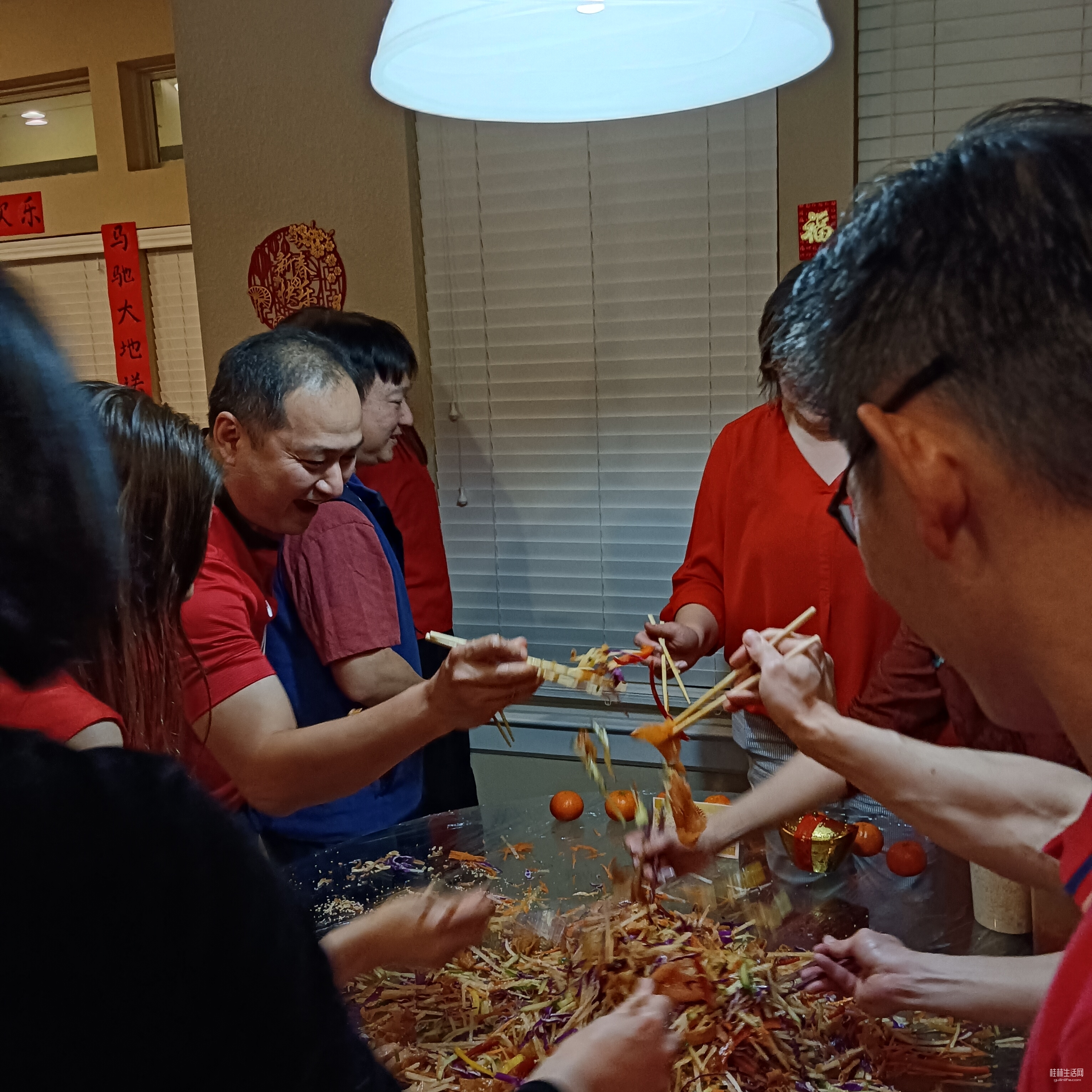 这是我捞的鱼生,愿来年发点小财。今年退休金涨一点。
