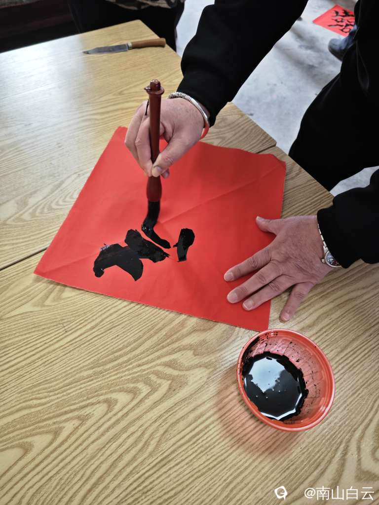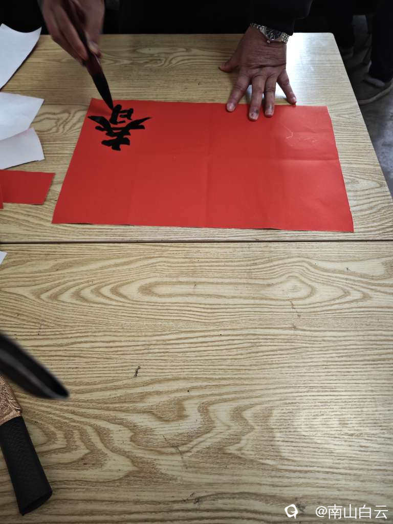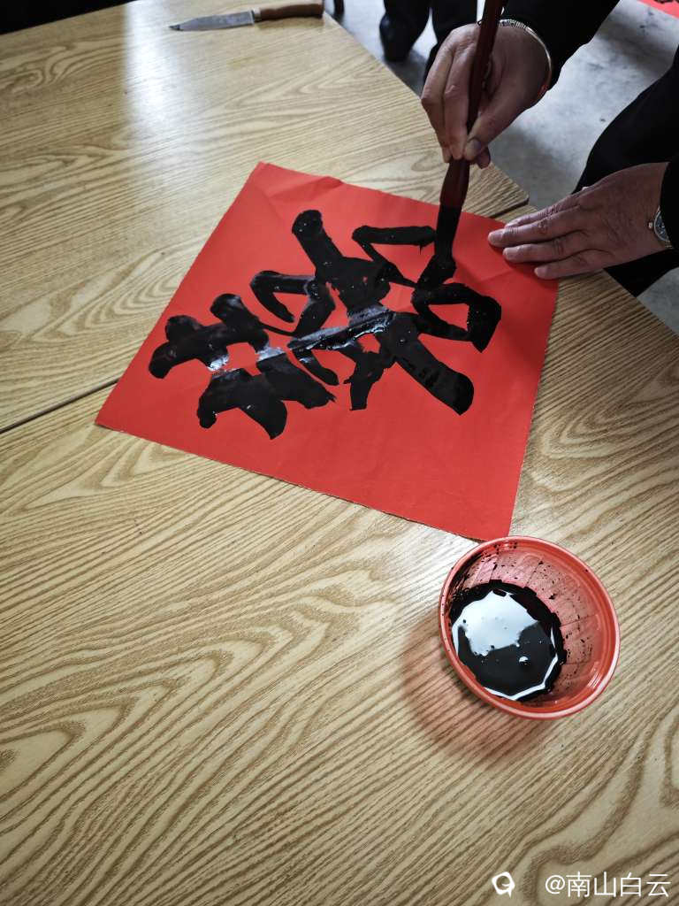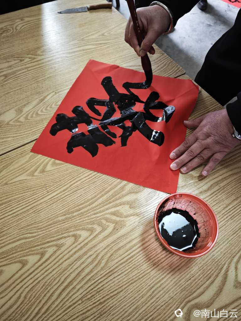 好久没有写毛笔字了,帮写婚联,先写“喜”