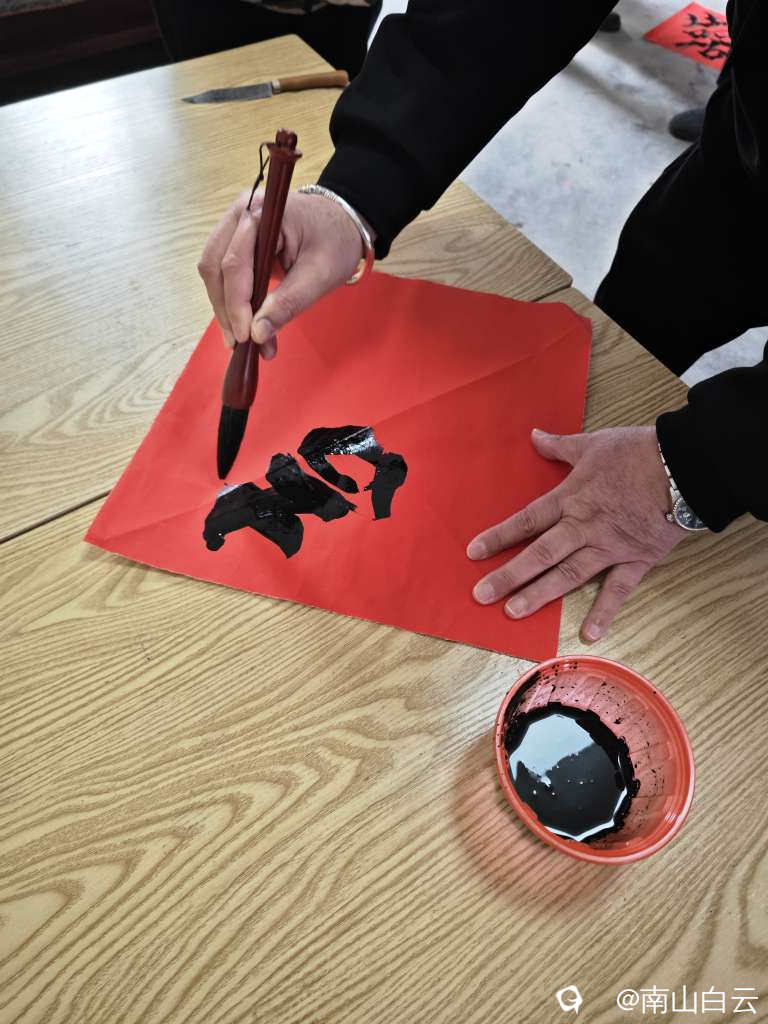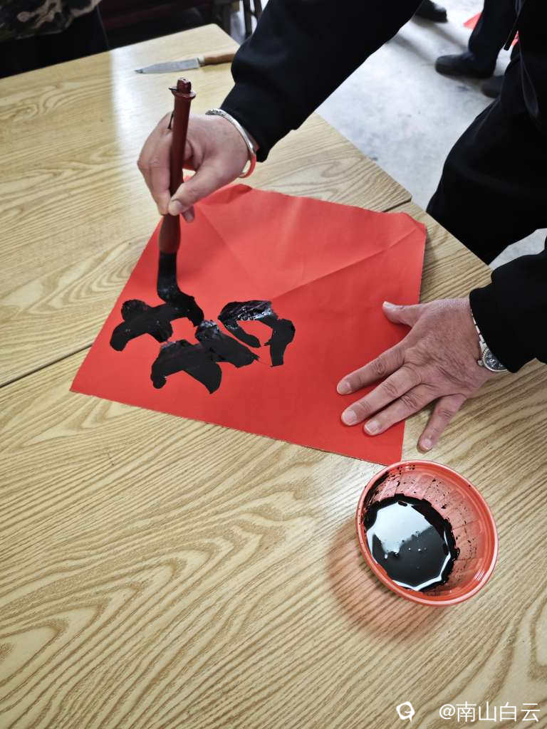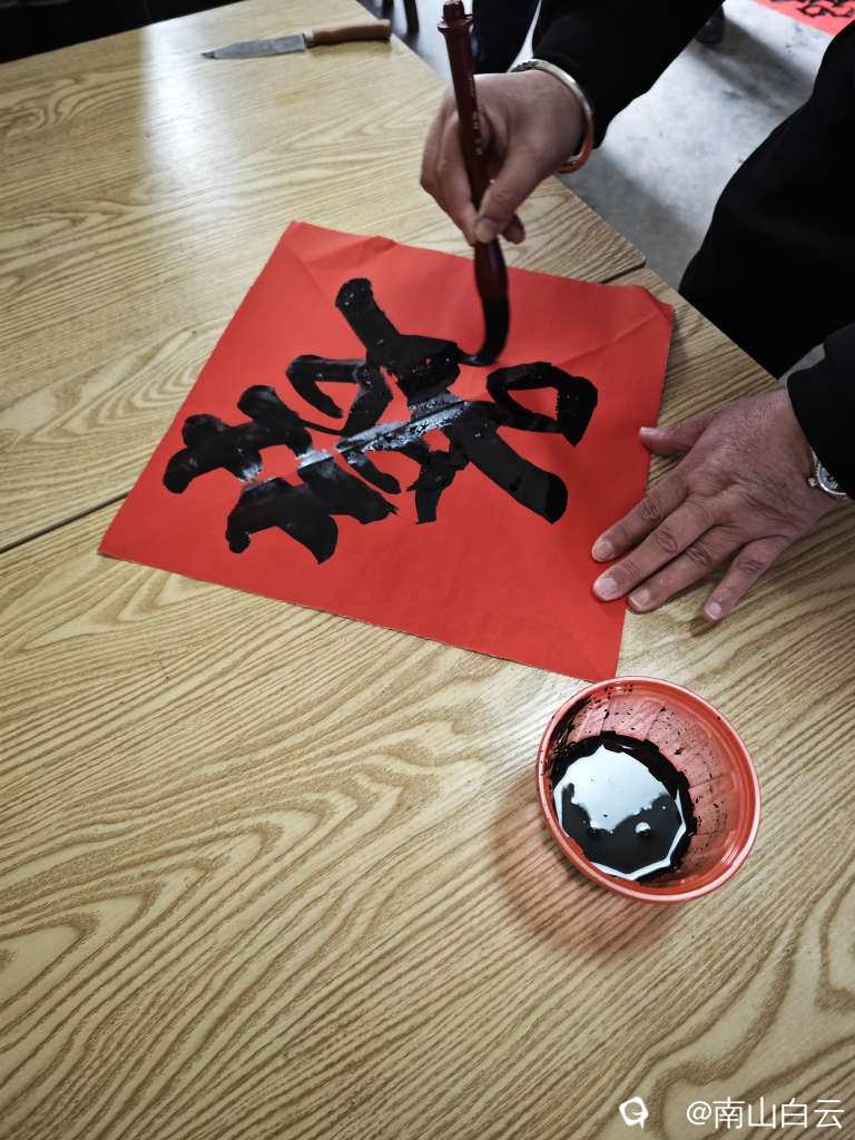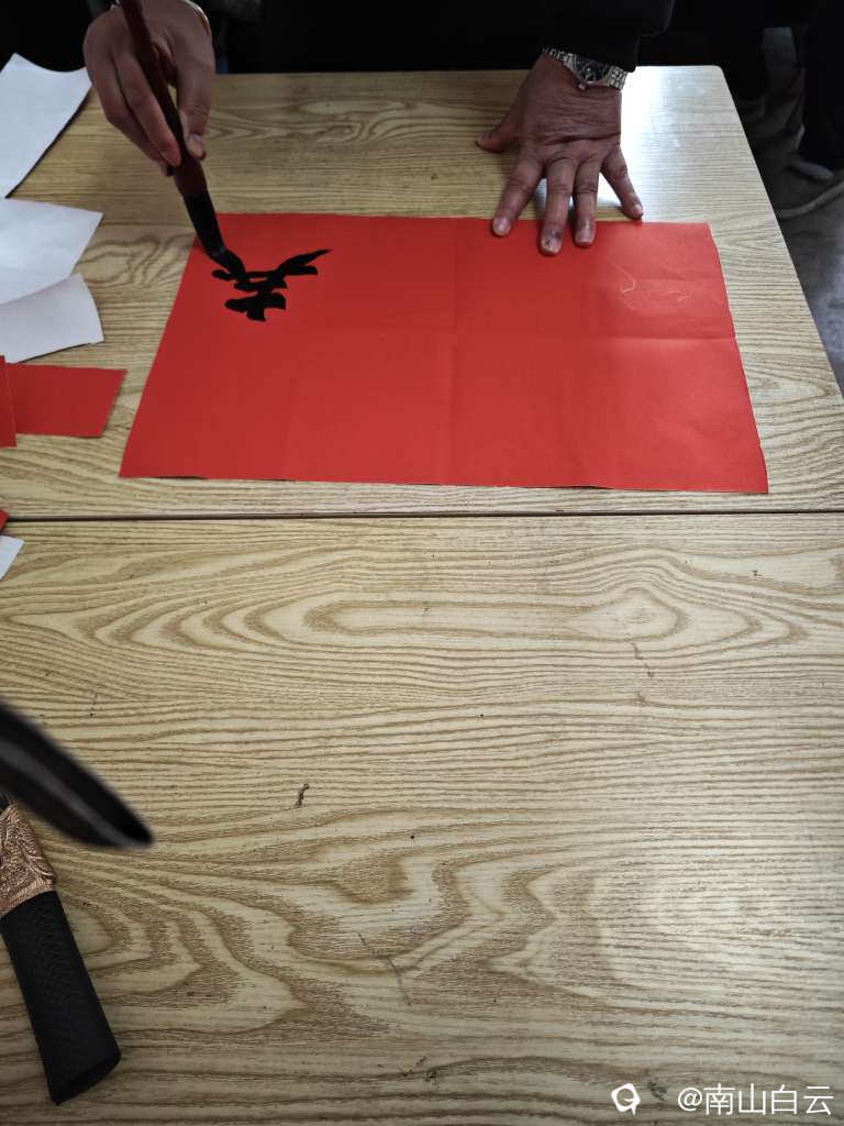 好久没有写毛笔字了,帮写婚联,先写“喜”