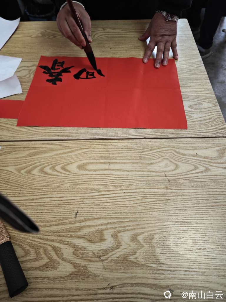 写下“春回大地”,确确实实,春天来了,祝贺族弟婚姻美满。